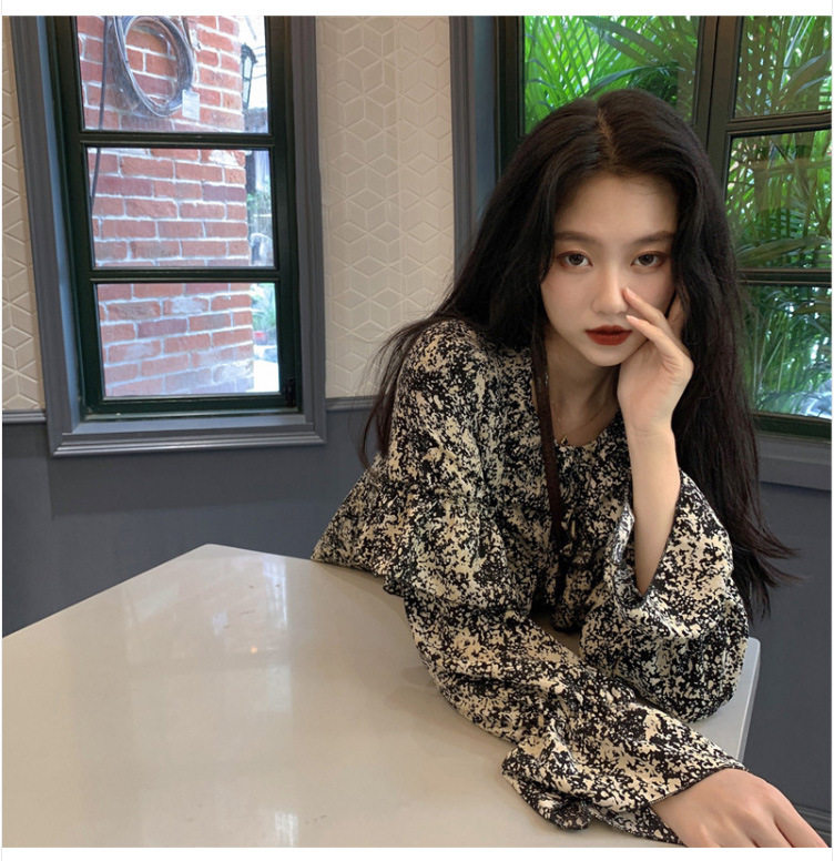 Ретро базовый лонгслив, весеннее платье, французский стиль, в цветочек, 2024 года