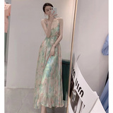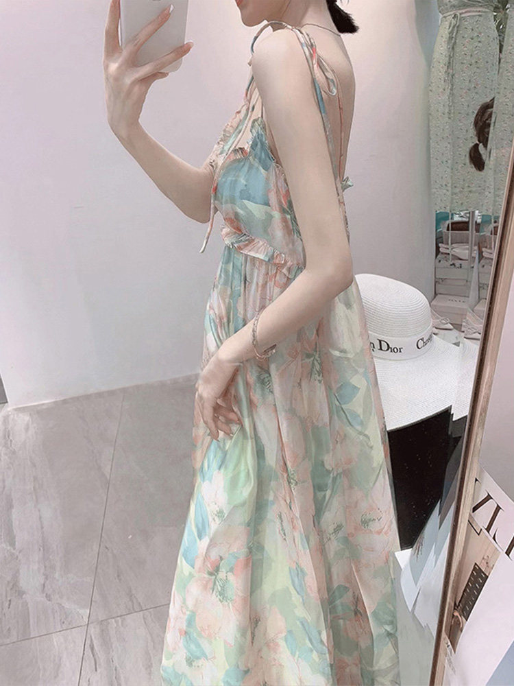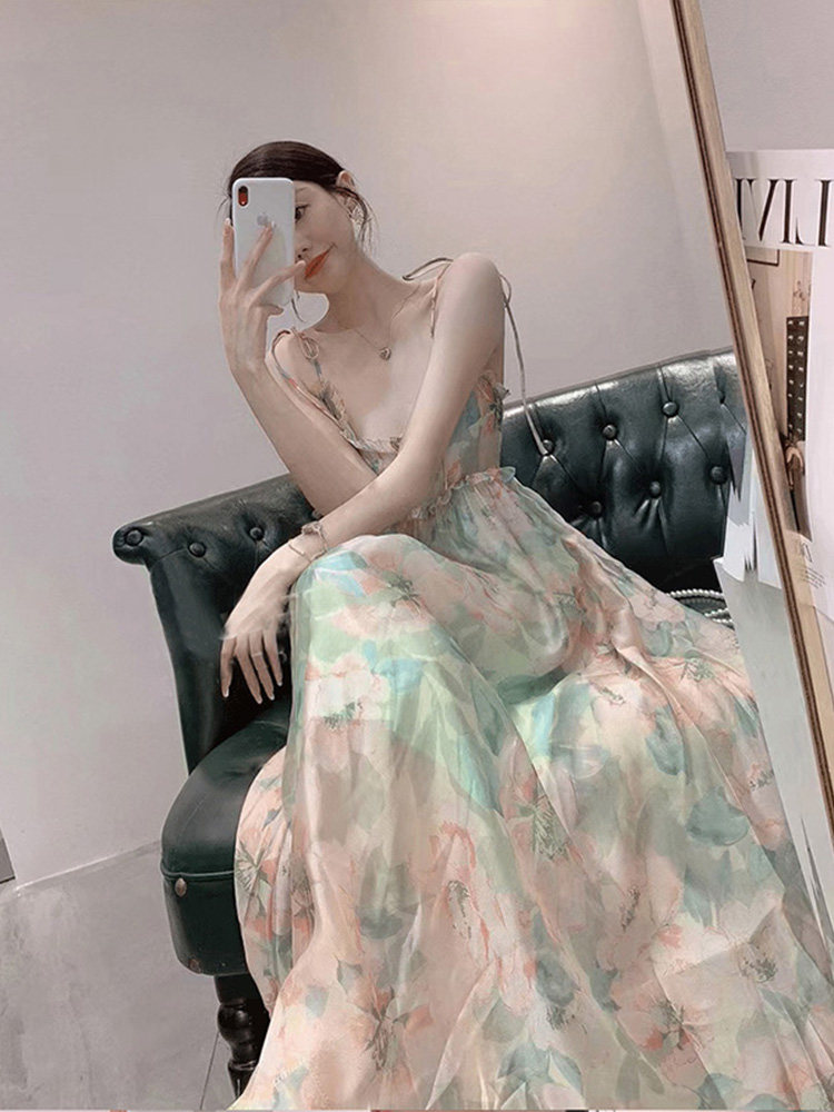 Летний приталенный корсет, платье-комбинация, шифоновое платье, в корейском стиле, в цветочек, облегающий крой