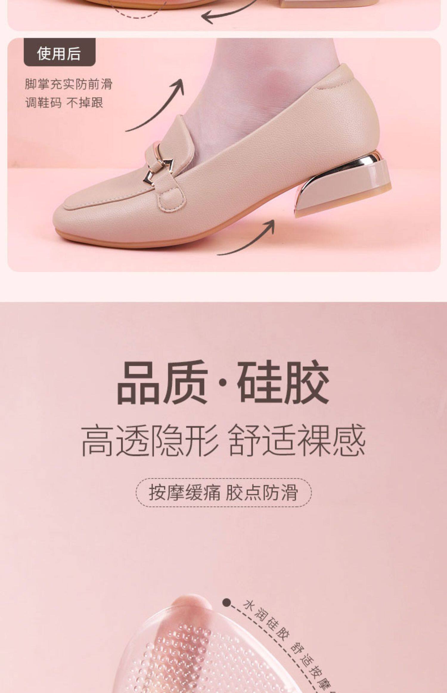 Противоболевые силиконовые туфли на высоком каблуке без каблука, нескользящие полустельки