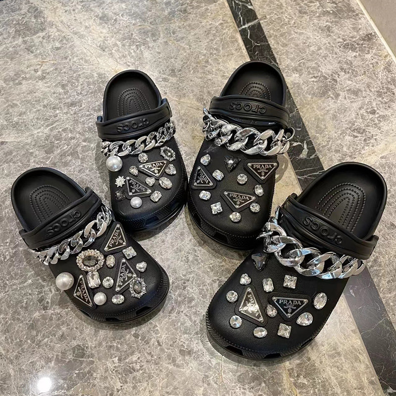 Crocs, аксессуар, тапочки, цепь из жемчуга, пряжка для обуви в виде сердечка, DIY