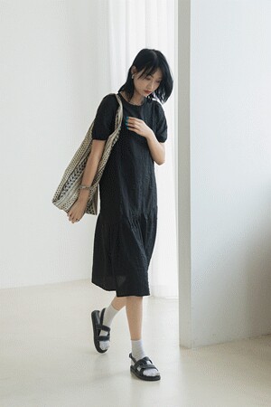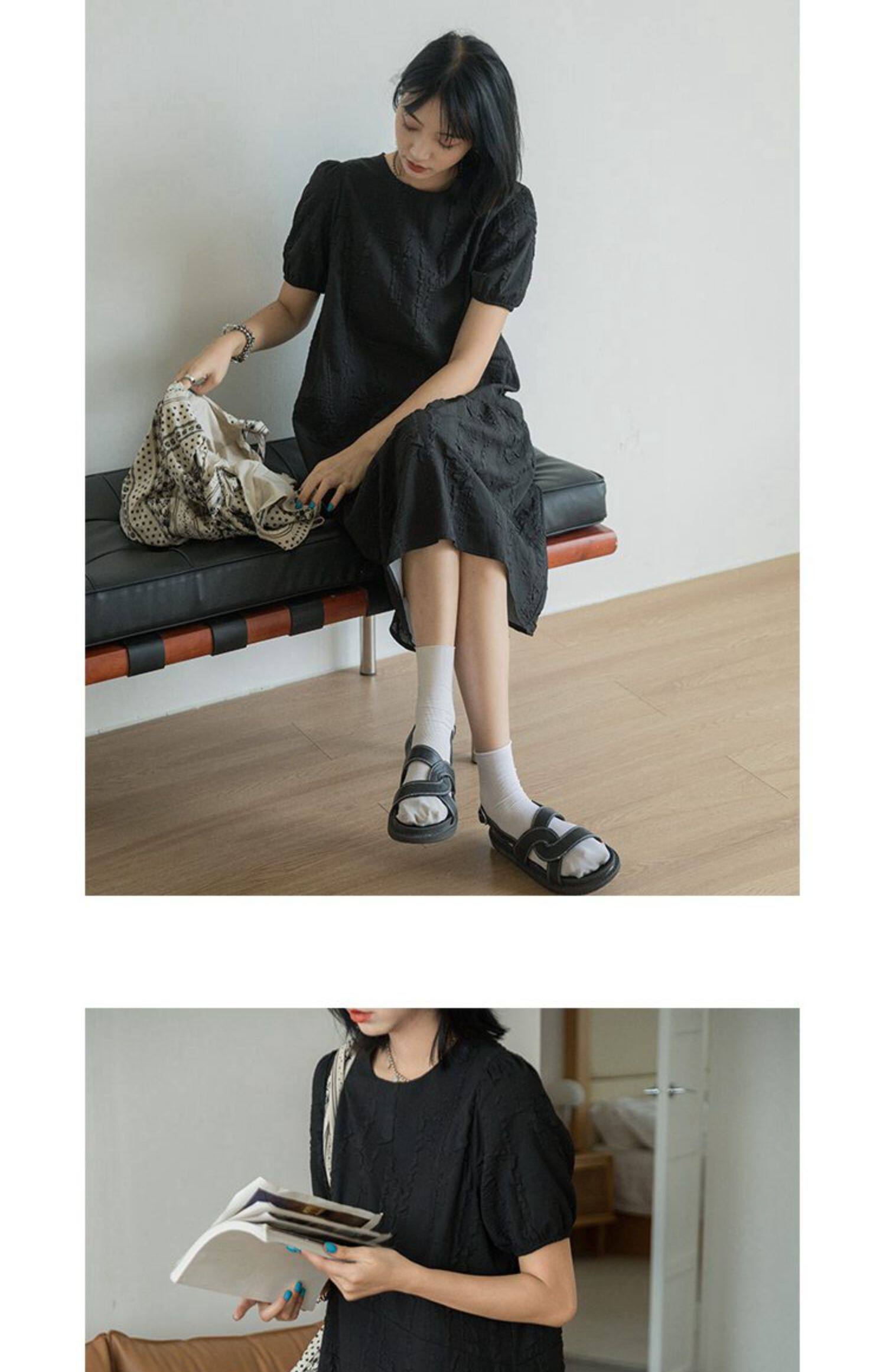 Летнее длинное платье, черная юбка, свободный крой, средней длины, короткий рукав
