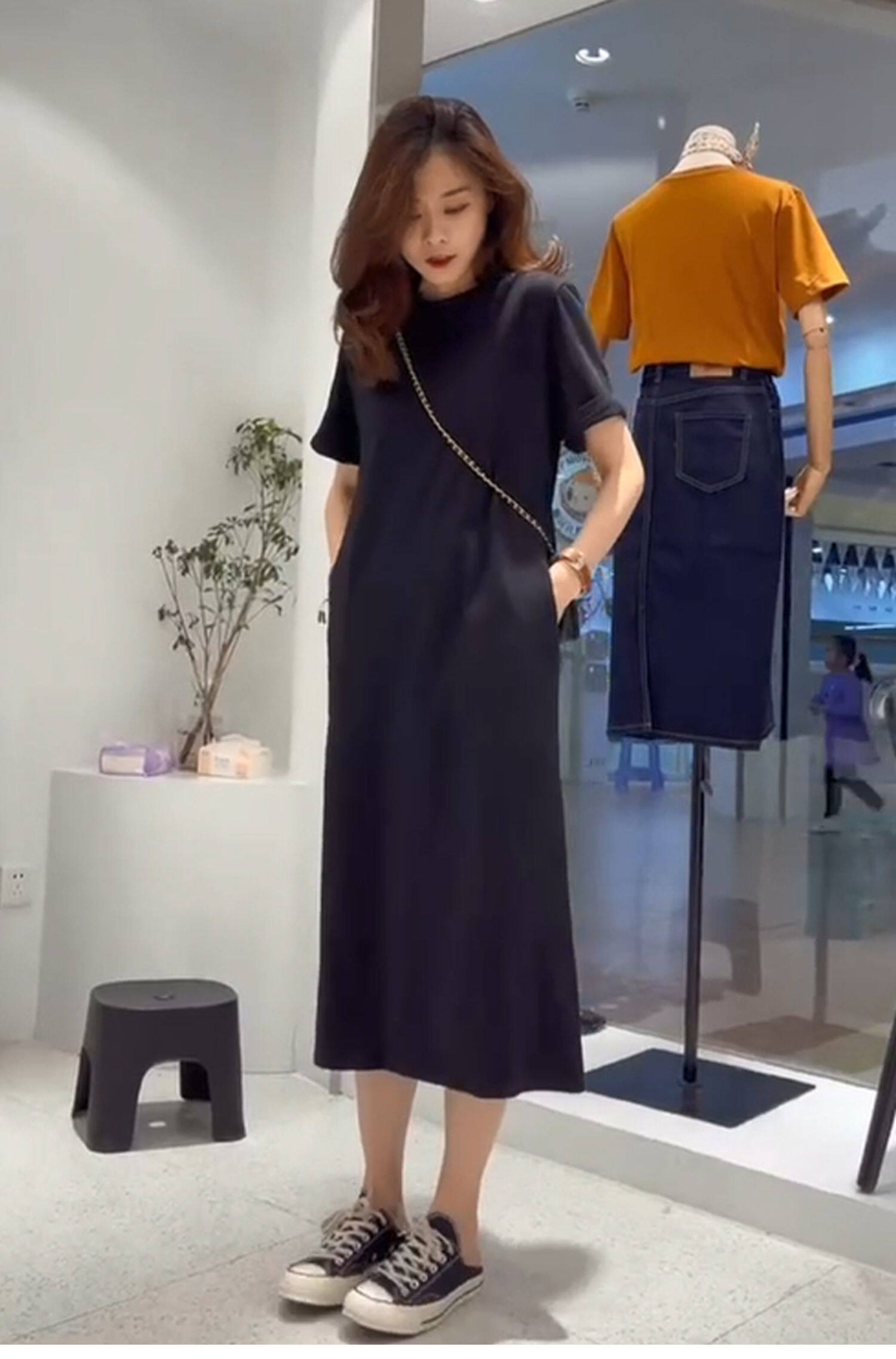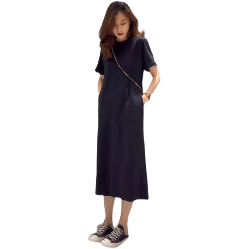 Летнее платье, дизайнерская длинная юбка с круглым воротником, в корейском стиле, тренд сезона