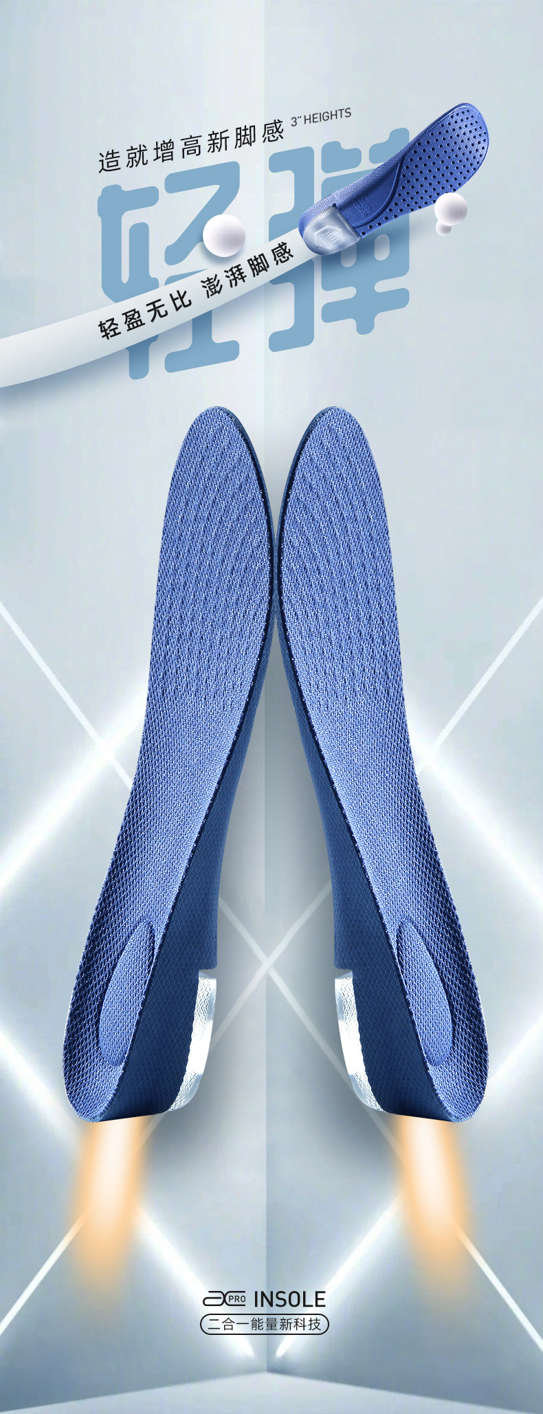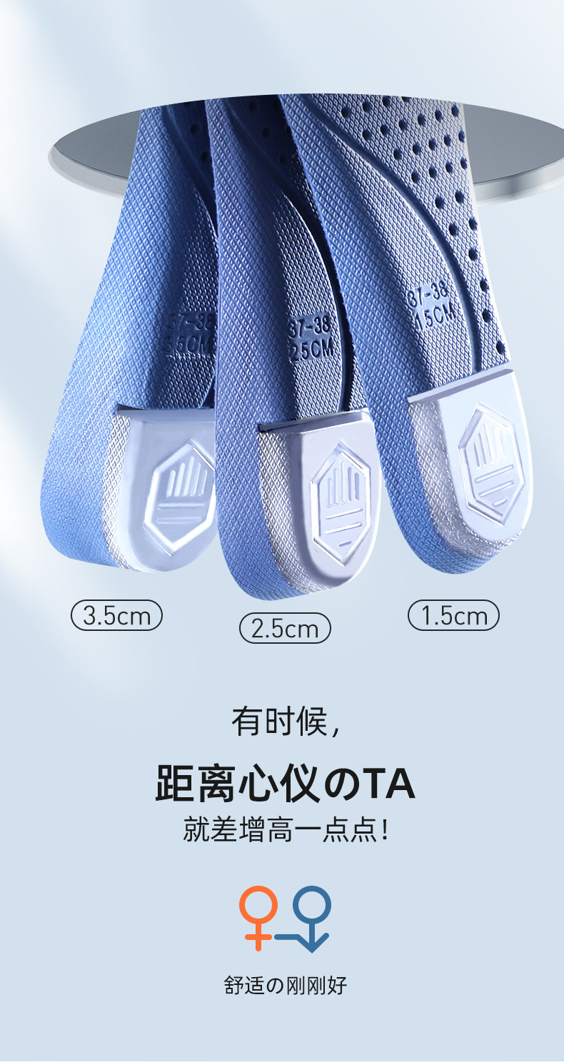 Мужские невидимые летние стельки для увеличения роста