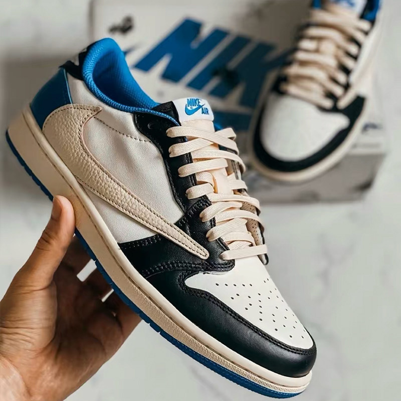 Адаптация к Air Jordan1 Low Fujiwara Hao Blue Black Lightning Poling Rice Pore Pure Color Восковой ремень