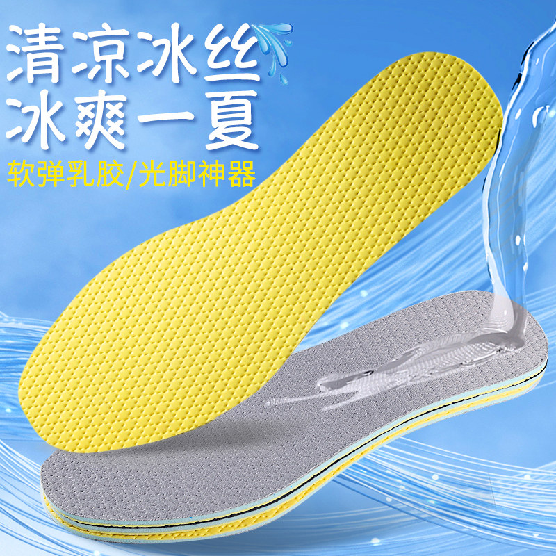 Шелковые латексные комфортные спортивные амортизирующие тонкие летние стельки подходит для мужчин и женщин, впитывают пот и запах, мягкая подошва