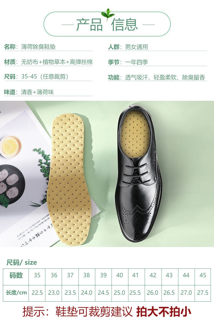 Мятные стельки подходит для мужчин и женщин, дышащий дезодорант, впитывают пот и запах, увеличенная толщина