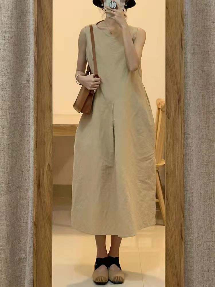 Летнее ретро дизайнерское платье с рукавами без рукавов, свободный крой, тренд сезона