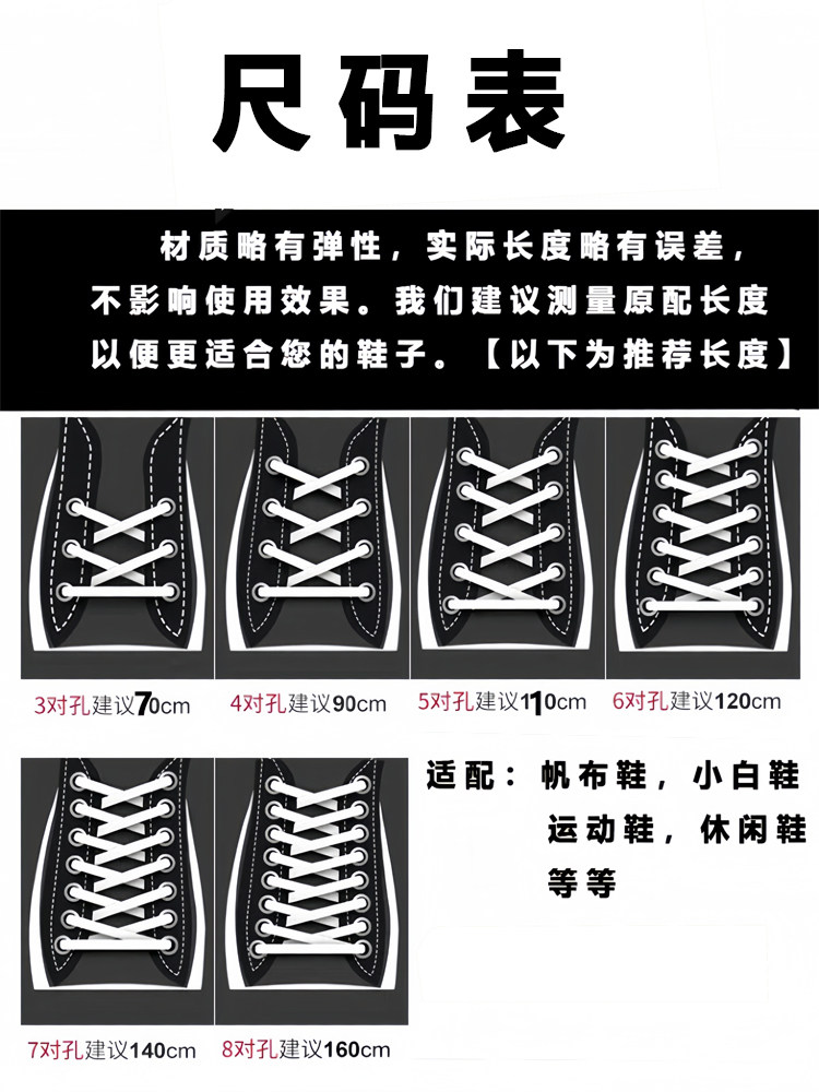 | Длина: | 90cm, 110 см [применимо 4--5 пары отверстий], 120 см 【применимо к 6 парам отверстий】, 140 см 【применимо к 7 парам отверстий】, 160 см 【применимо к 8 парам отверстий】 |
