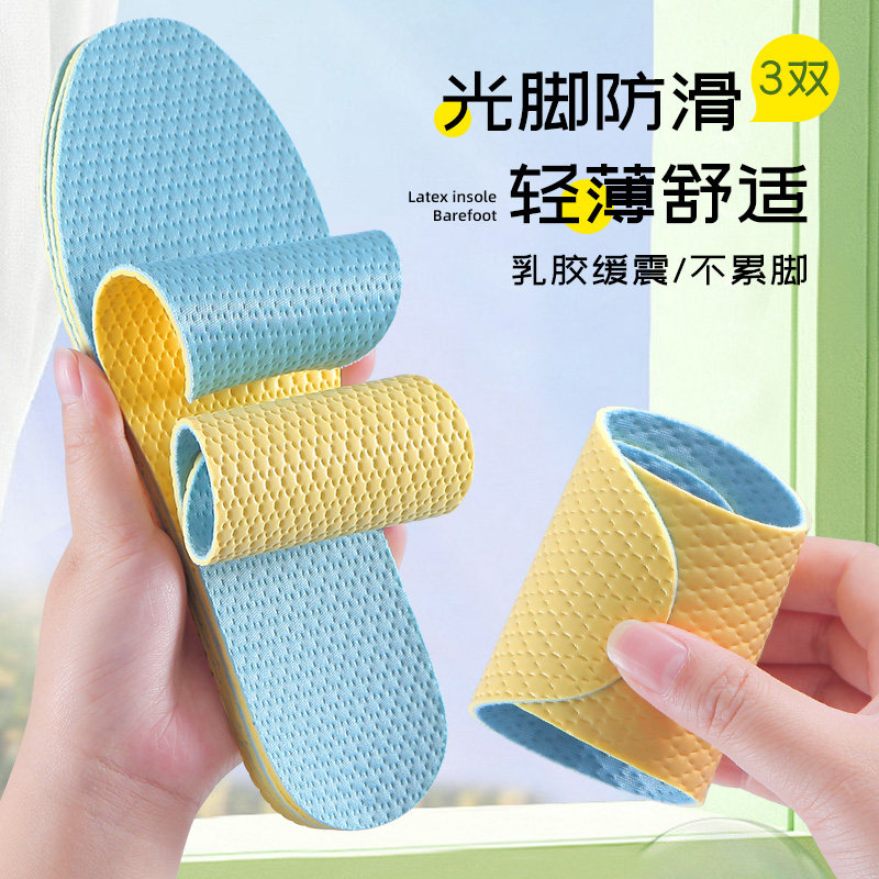 Латексные дышащие летние тонкие спортивные комфортные амортизирующие стельки подходит для мужчин и женщин, впитывают пот и запах, мягкая подошва