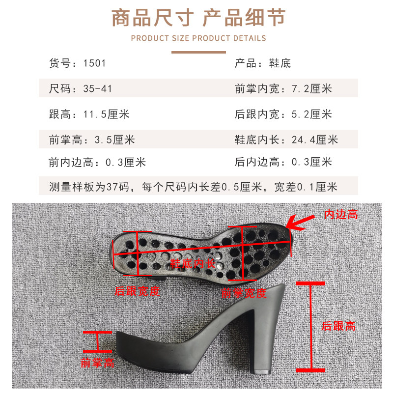 Туфли на высоком каблуке, полиуретановая нескользящая износостойкая подошва