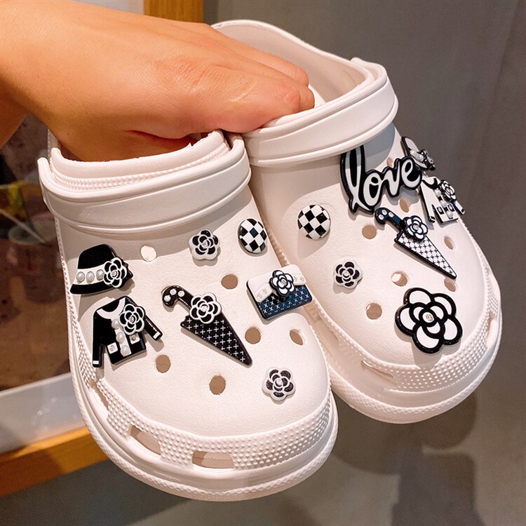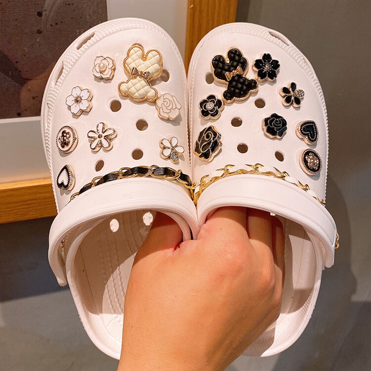 Crocs, пряжка для обуви, тапочки, аксессуары, ластик, (в наличии на складе), в стиле Шанель