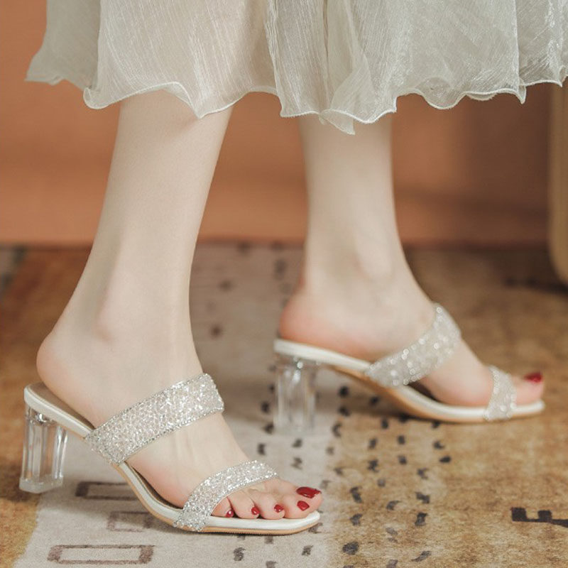 Cozyroom Французская легкая роскошь ~ прозрачные босоножки и тапочки для женской летней верхней одежды, модные туфли на толстом каблуке, качественная и универсальная обувь.