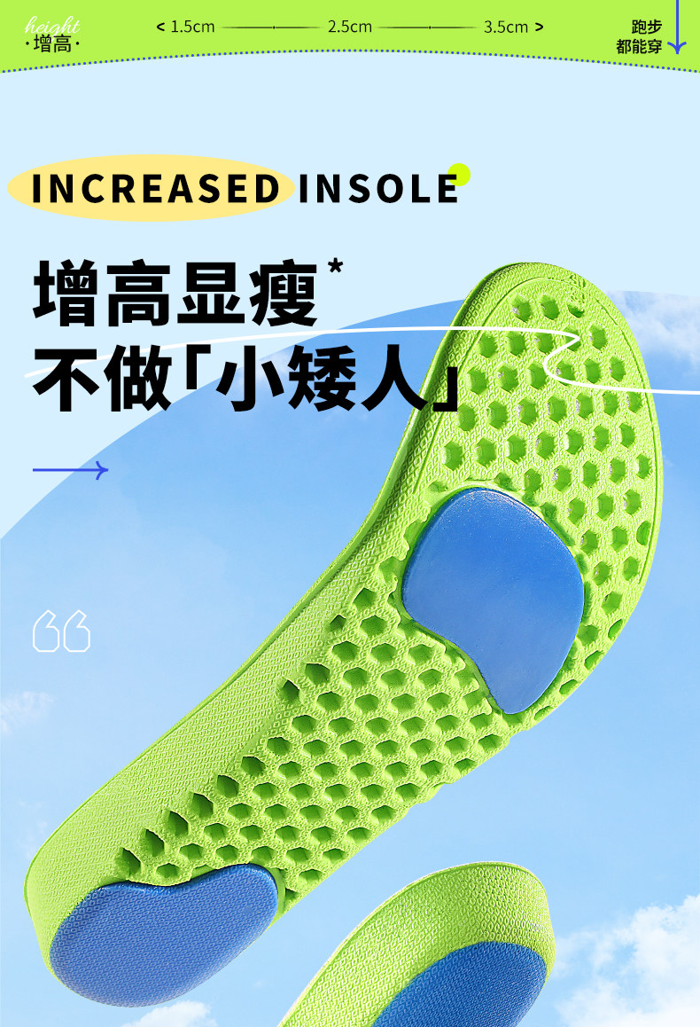 Дышащие невидимые спортивные амортизирующие комфортные стельки для увеличения роста, мягкая подошва