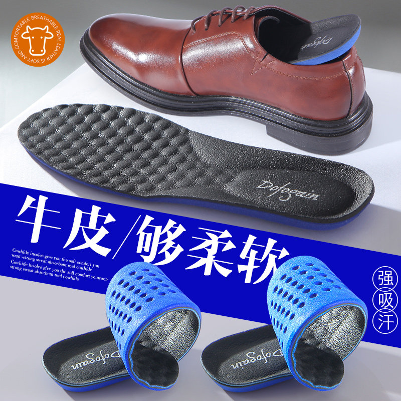 Кожаные дышащие стельки подходит для мужчин и женщин, амортизирующий противоболевой зимний массажер, впитывают пот и запах, из натуральной кожи, увеличенная толщина