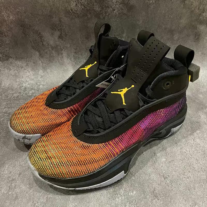 Адаптированный воздух Jordan 36 Pf Sunset Sunset Черный и фиолетовый оранжевый остров красочный