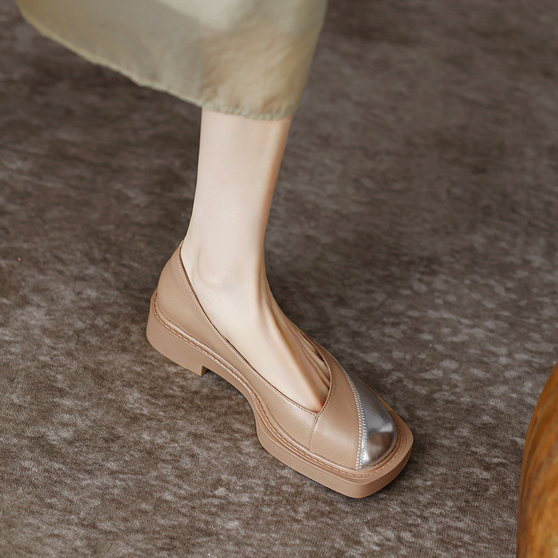 Tisdaini красива и универсальна. Женские одиночные туфли из натуральной кожи с квадратным носком и цветными блоками, с мелким открытым носком, осень 2022, осень 2022, на толстой подошве, на толстом каблуке высотой 4 см.