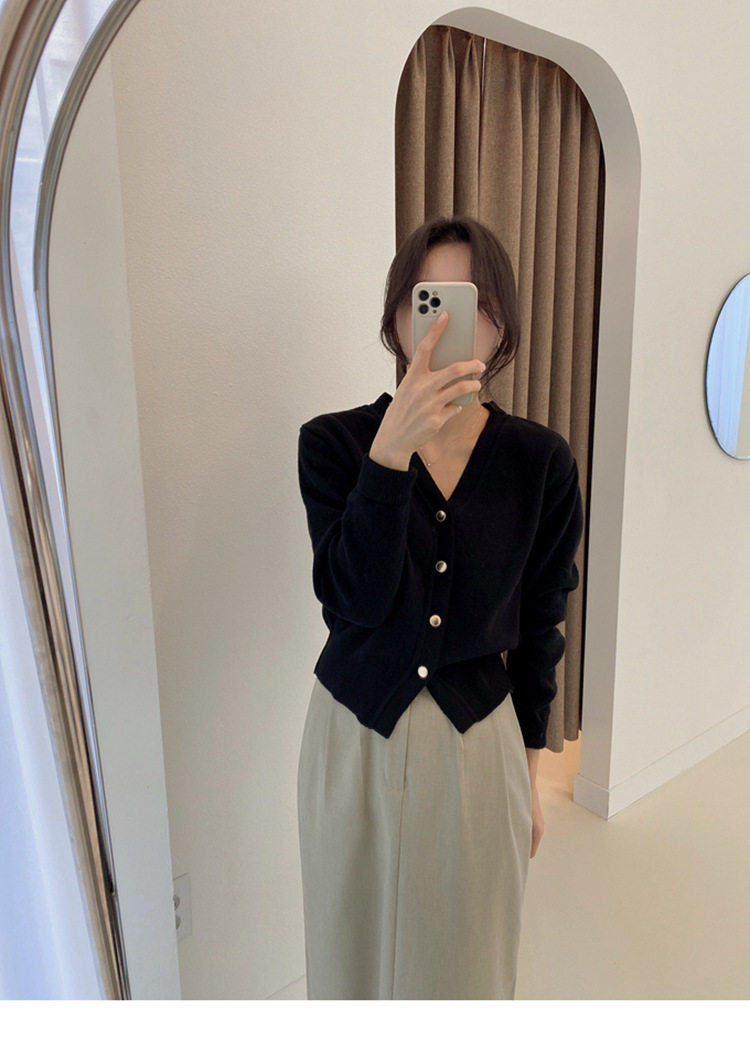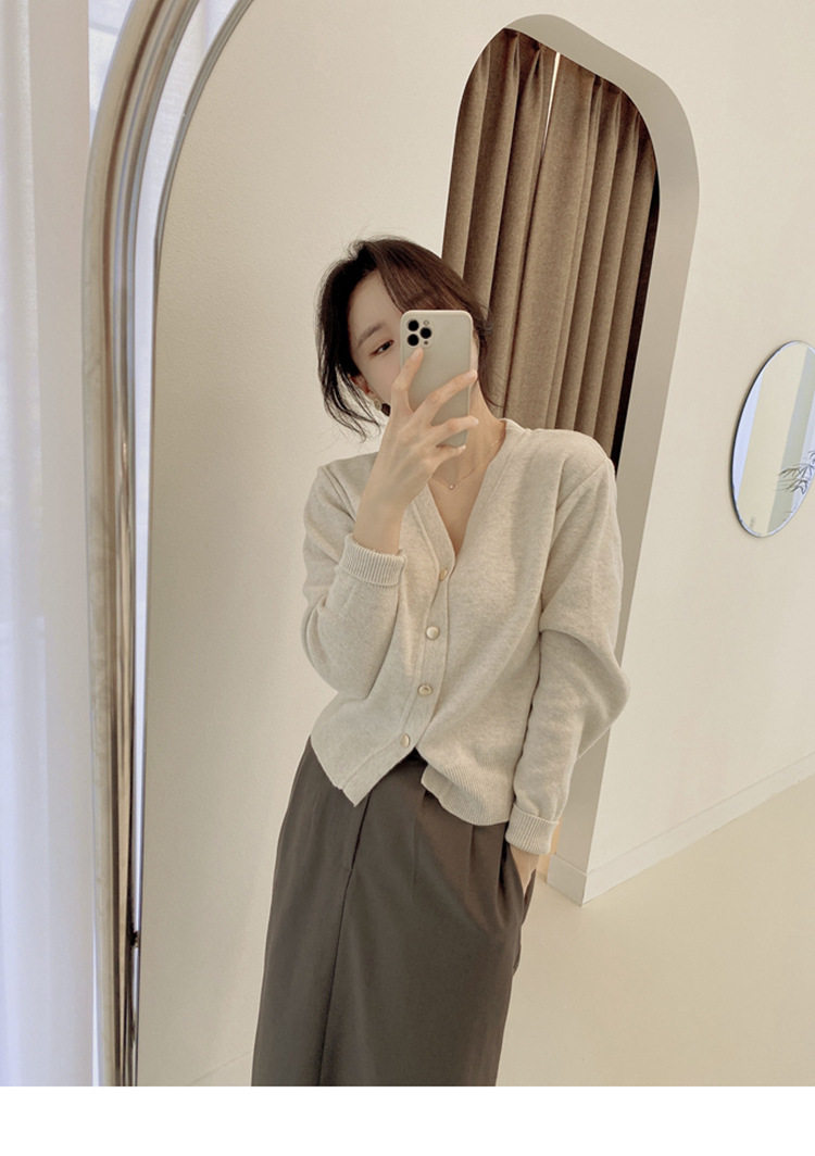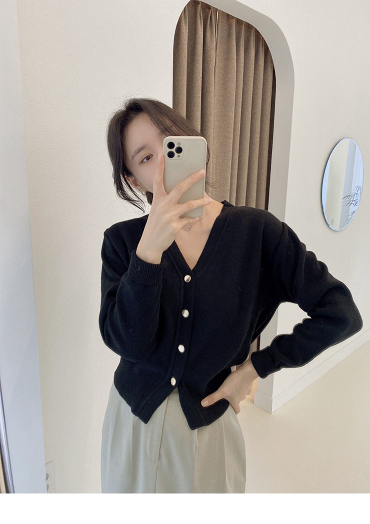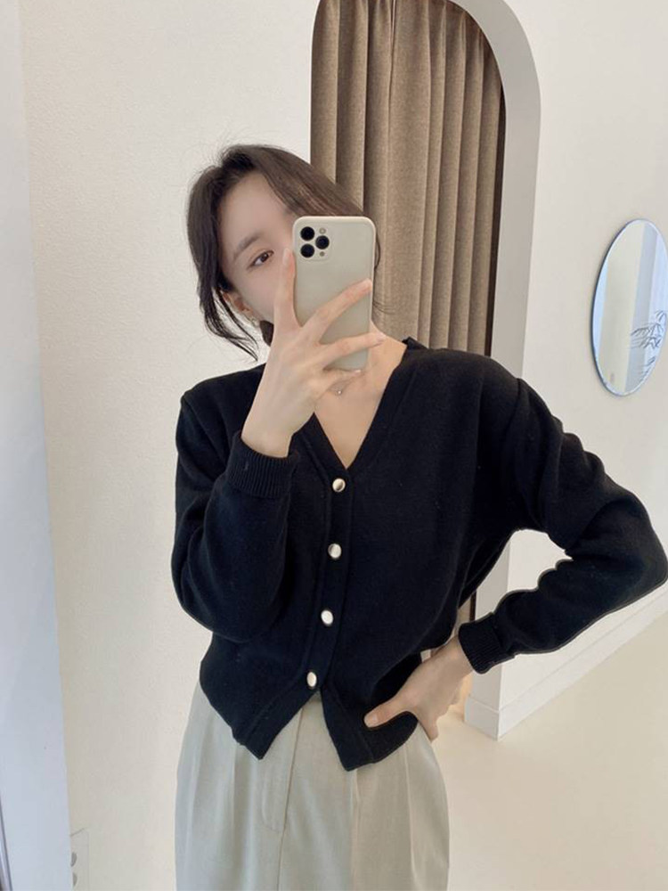 Базовый короткий лонгслив, демисезонный японский трикотажный кардиган, свитер, V-образный вырез