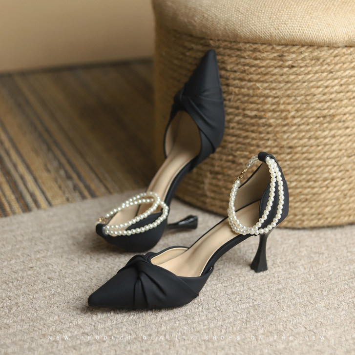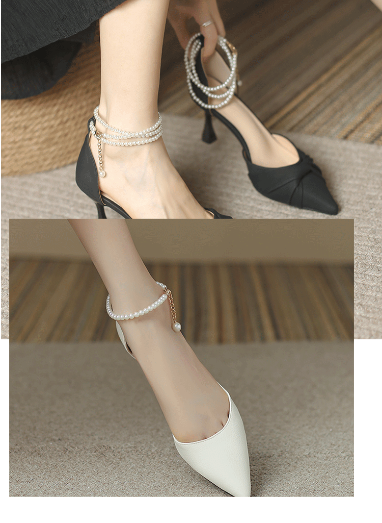 - Двойная жемчужная цепочка с белой лентой и серебряной пряжкой