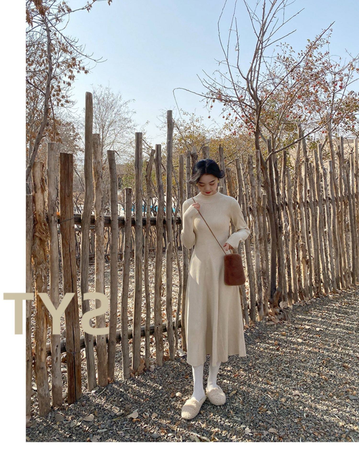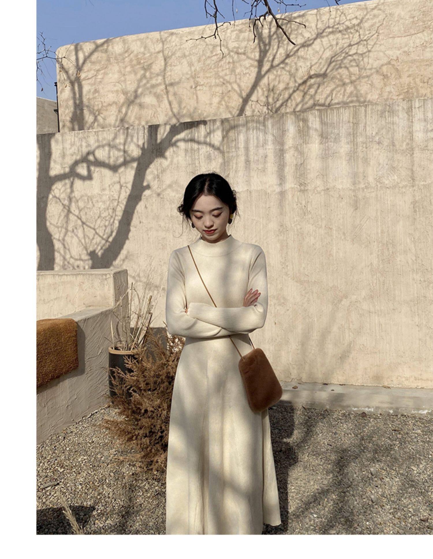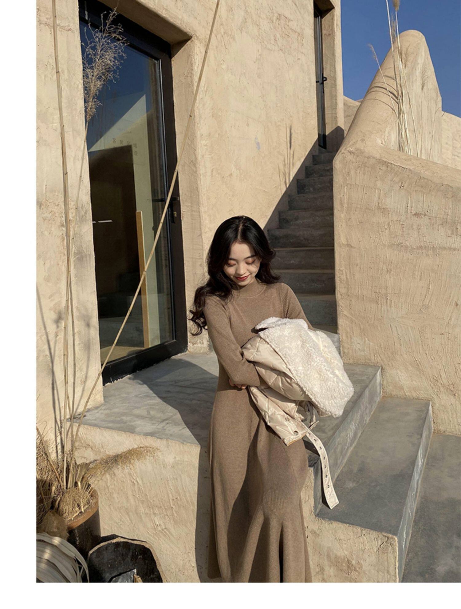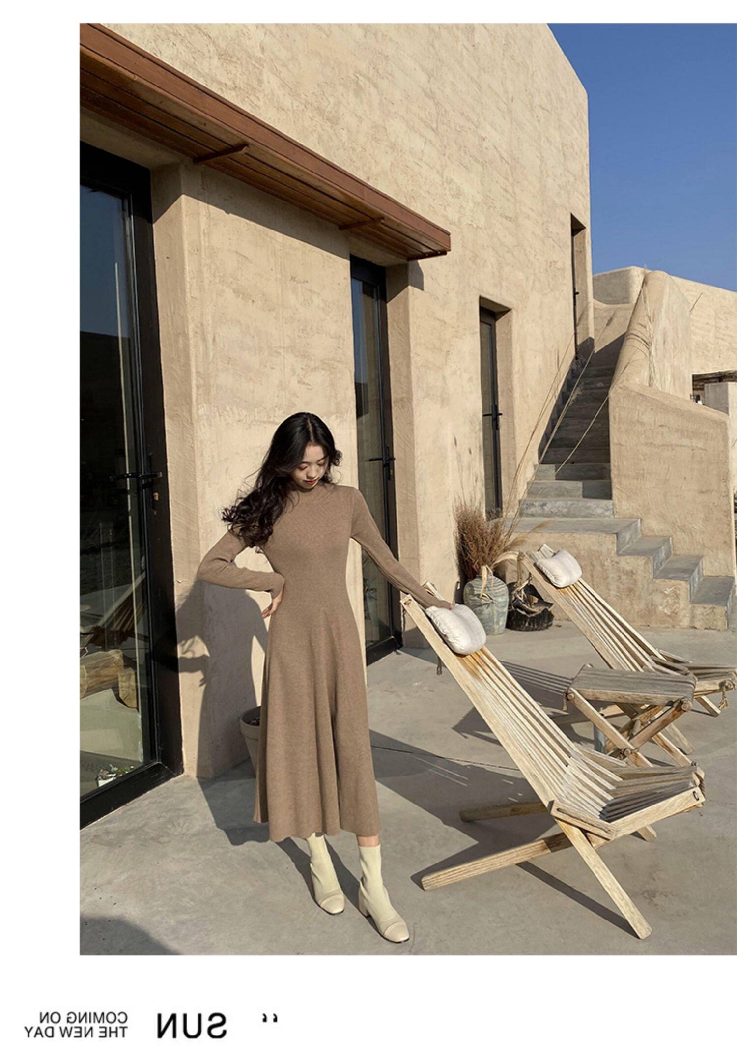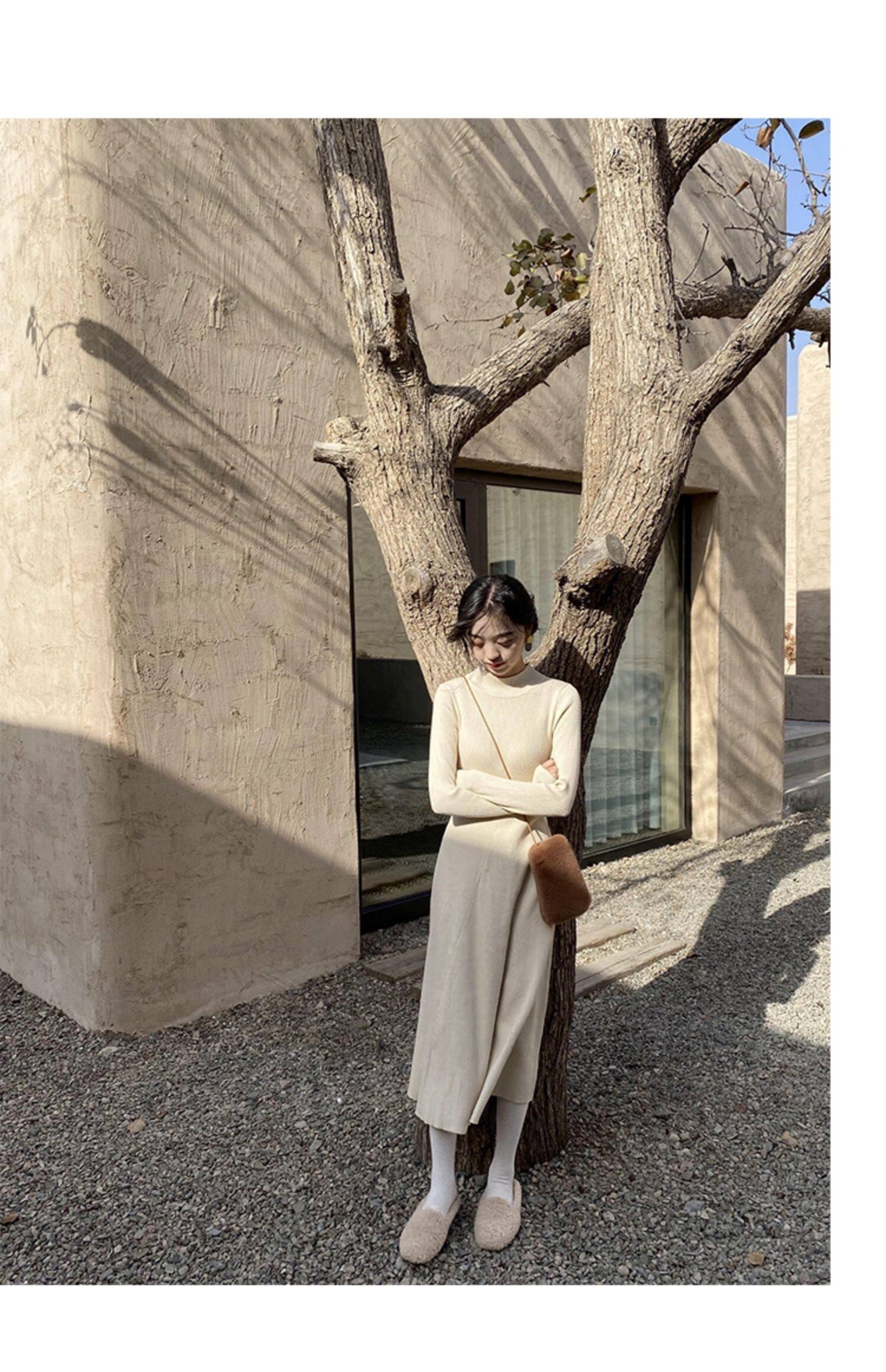 Базовое весеннее шерстяное платье, приталенный ростомер, в корейском стиле
