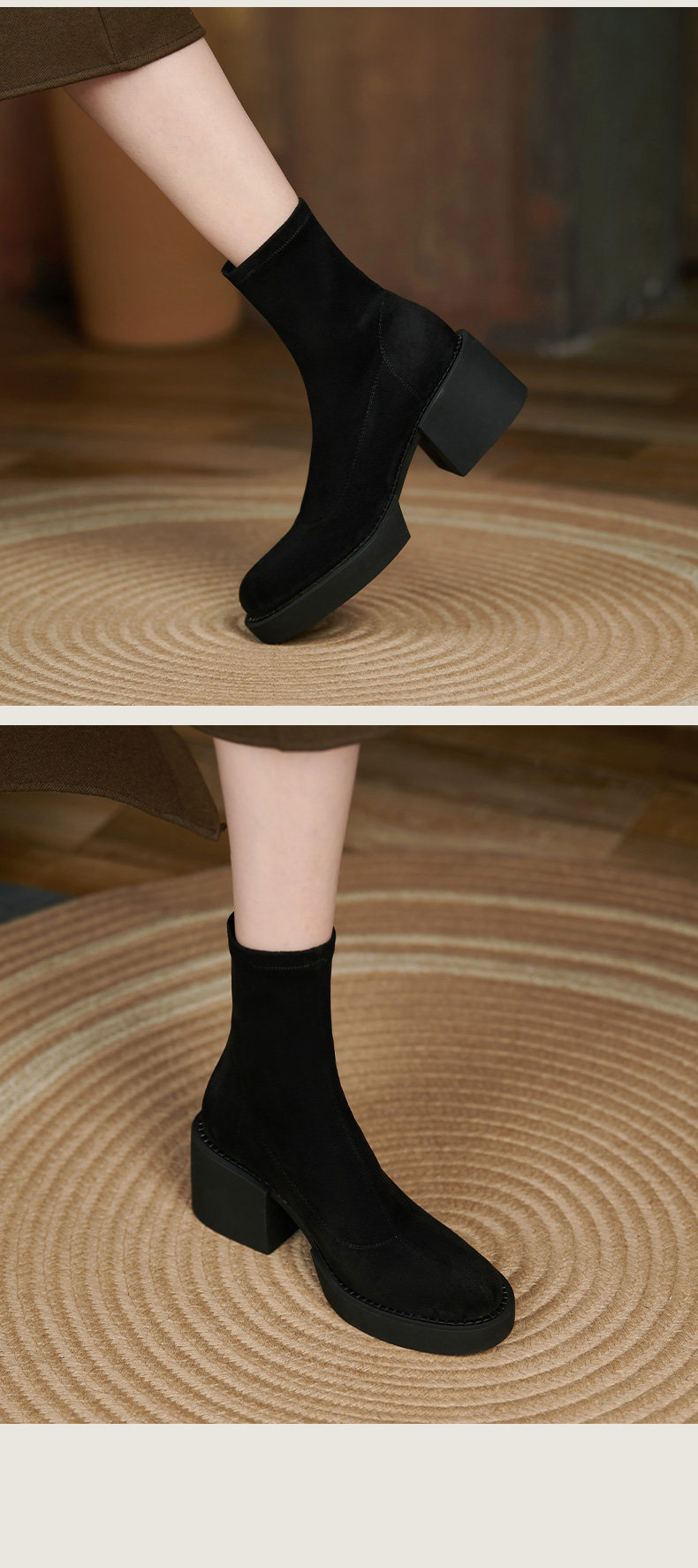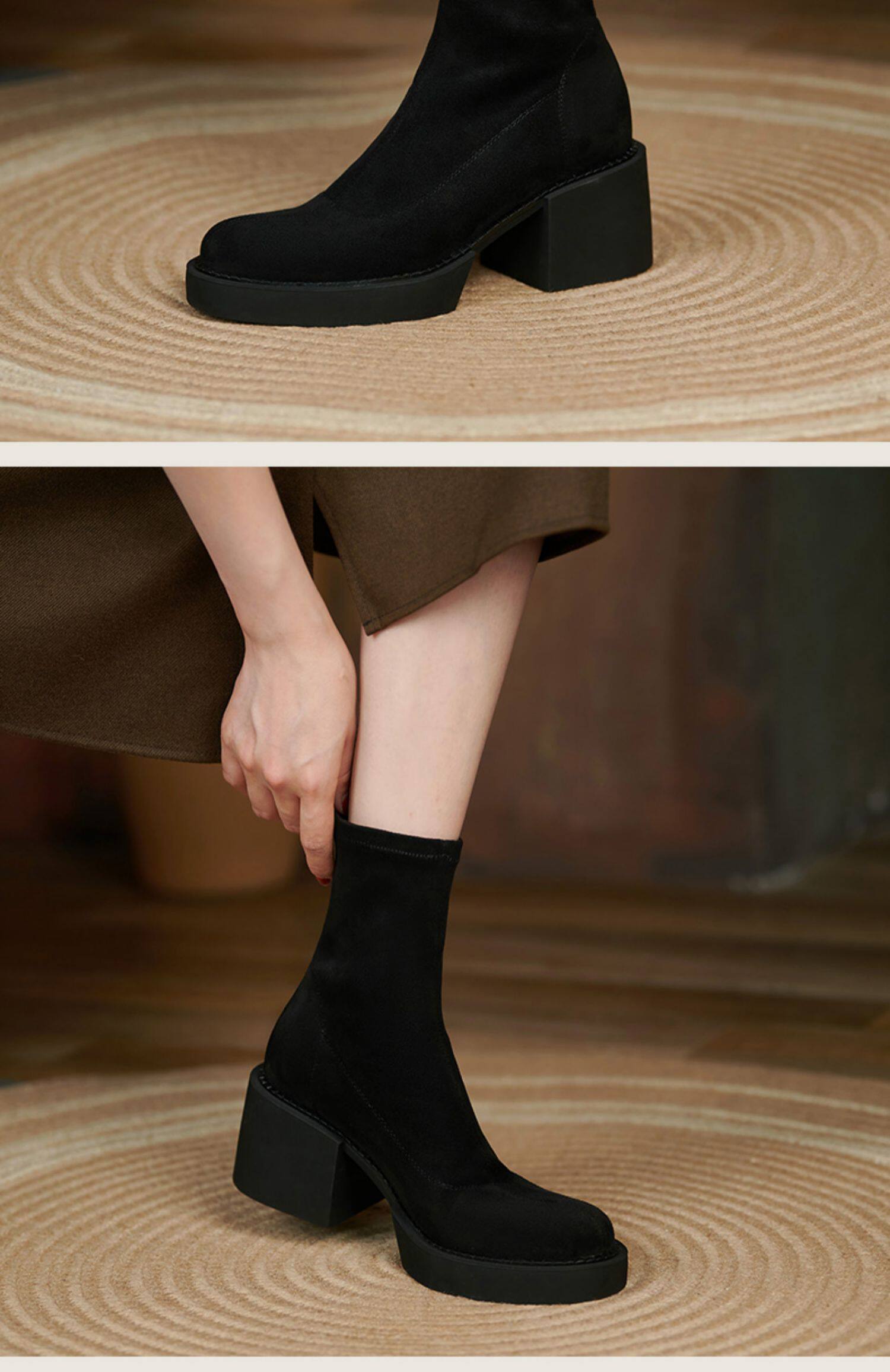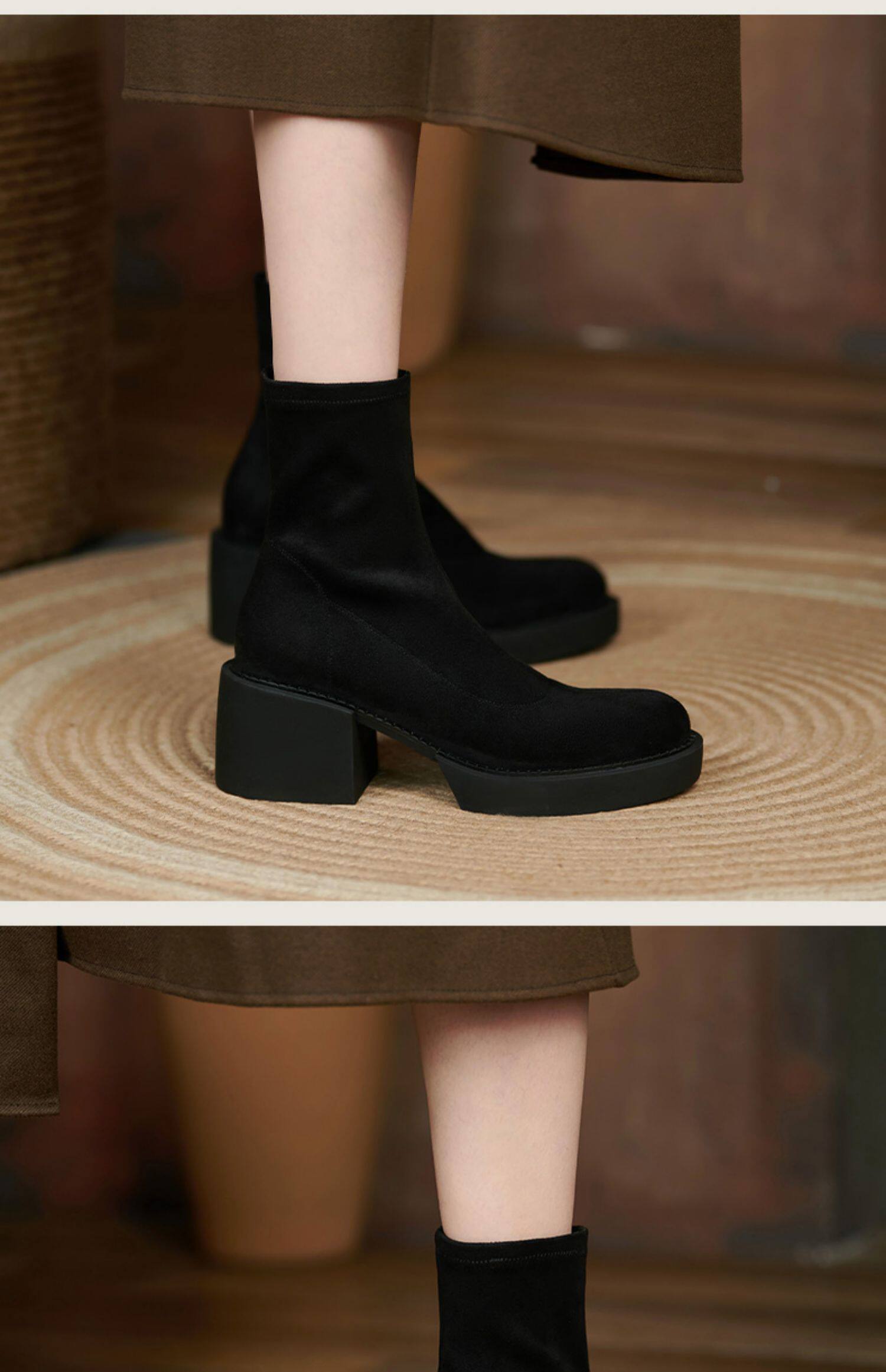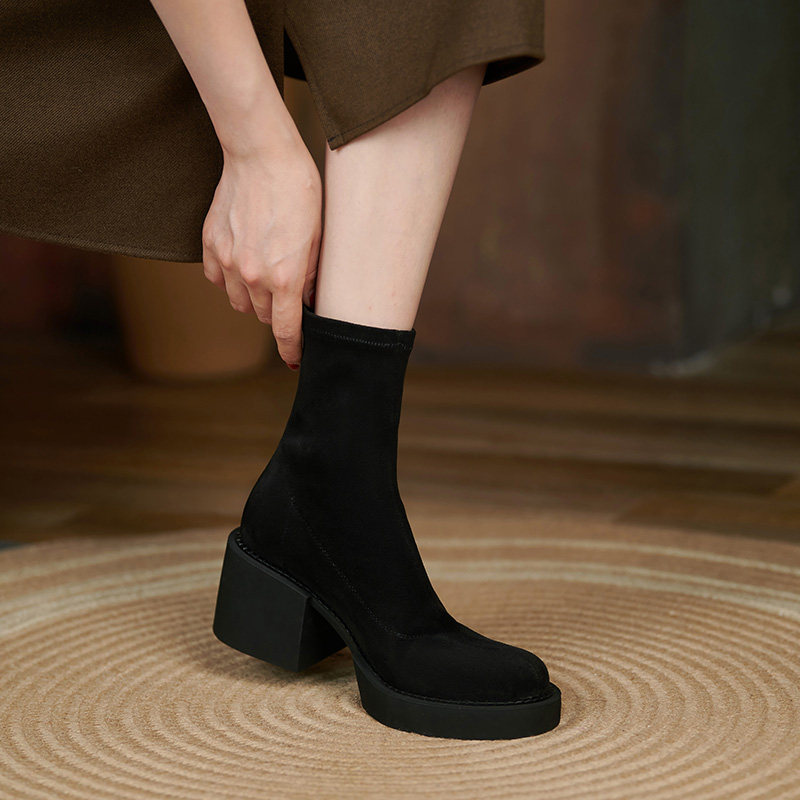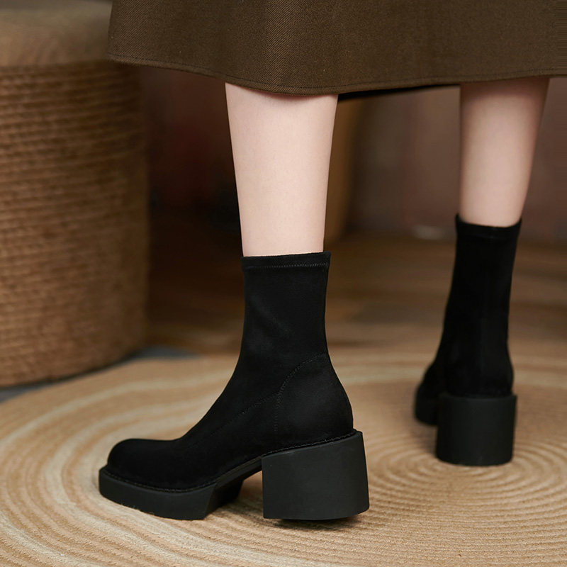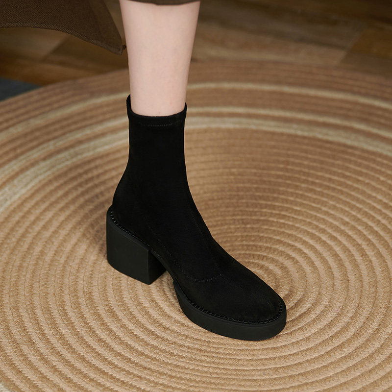 Tisdaini Super Slim ~ черные узкие ботинки; женские осенне-зимние одинарные ботинки; непромокаемые замшевые короткие сапоги на высоком каблуке 6 см.