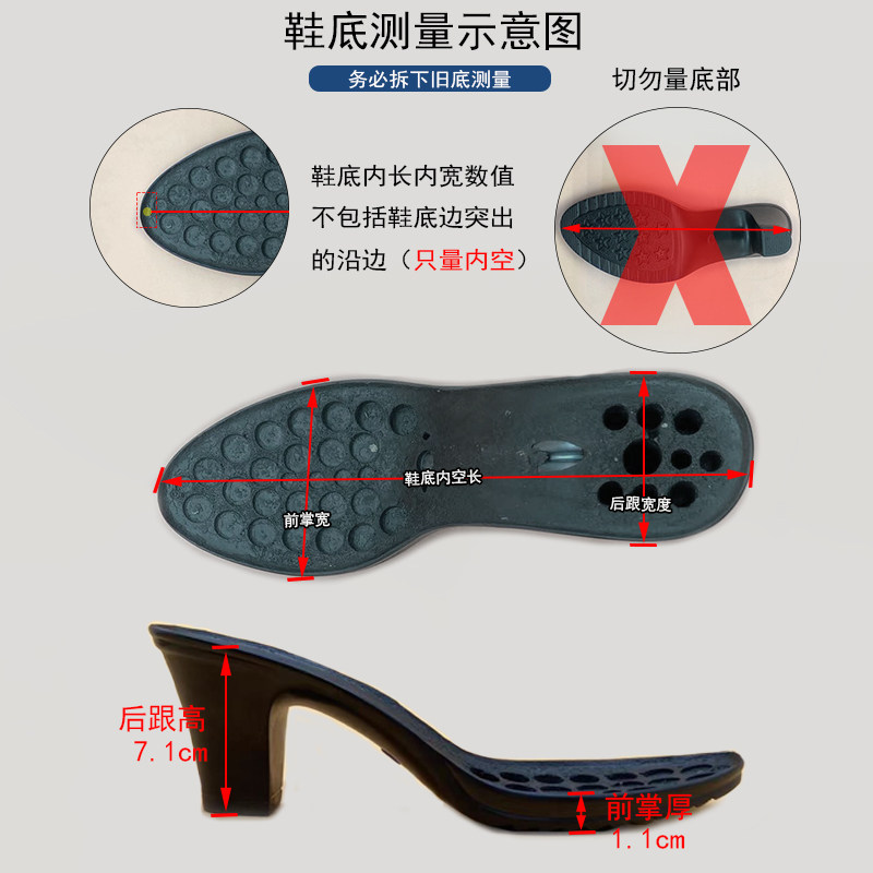 Женщины с пяткой с дном 7 см, тонкая высокая каблука, устойчивые к замену обуви для восстановления подошвы женской