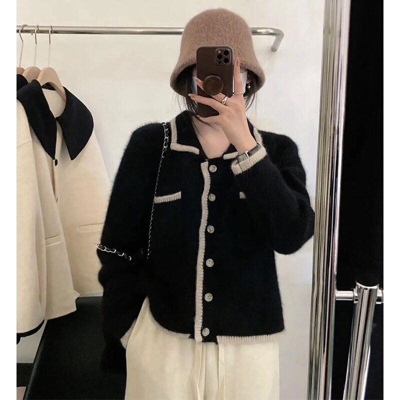 Японский ретро демисезонный свитер, куртка, трикотажный кардиган, 2023 года, квадратный вырез