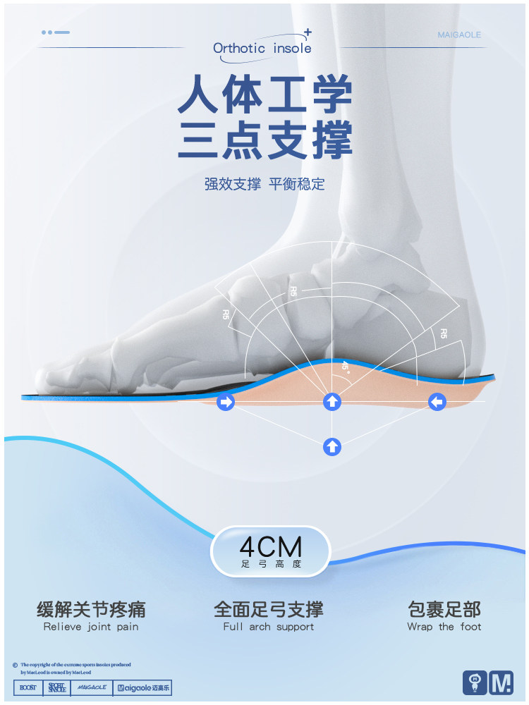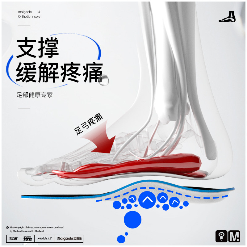 迈高乐 Корк -арка мягкая поддерживает жесткие ортодонтия стельки ортопедической прокладки для ортопедической ортопедической ортопедии