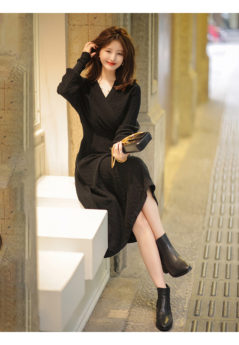 Демисезонный черный трикотажный корсет, платье, 2023 года, французский стиль, изысканный стиль