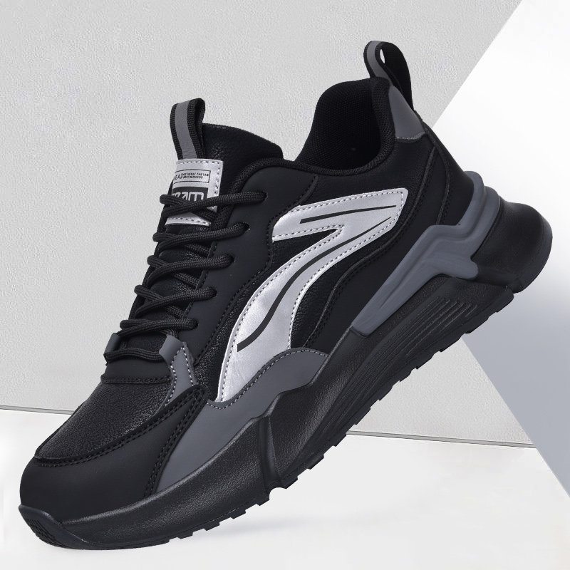 Мужская обувь модного гонконгского бренда, легкая подошва на мягкой подошве, осенне-зимняя черная аутентичная повседневная обувь, модная нескользящая кожаная обувь большого размера для мужчин