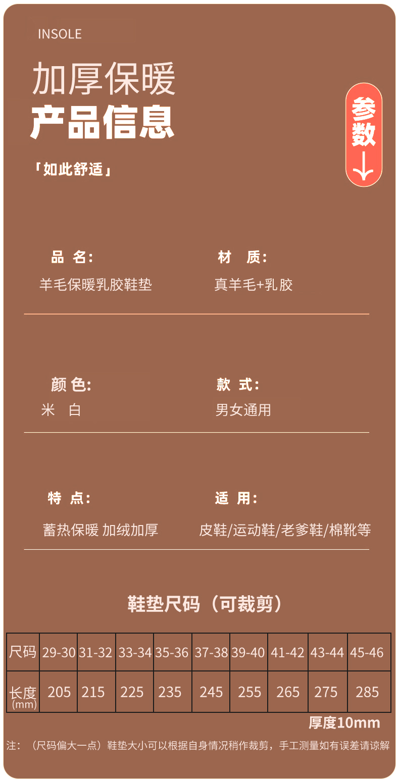 | Цвет: | 【1 пара】 настоящая шерстяная латексная стелька теплый, 【2 пары】 Настоящая шерстяная латексная теплая стелька, 【3 пары】 настоящая шерстяная латексная стелька, [3 пары] искусственный мех кролика, теплая и утолщенная модель, матовая пудра, [3 пары] Модель из искусственного меха кролика теплая и утолщенная - серый, [3 пары] Модель из искусственного меха кролика теплая и утолщенная-хаки., [3 пары] Модель из искусственного меха кролика теплая и утолщенная, кремово-белый., [3 пары] Имитация меха кролика теплая и утолщенная модель-коричневая., [3 пары] искусственный мех кролика, теплая и утолщенная модель, разные цвета., Возьмите другие размеры (29 ярдов) |
