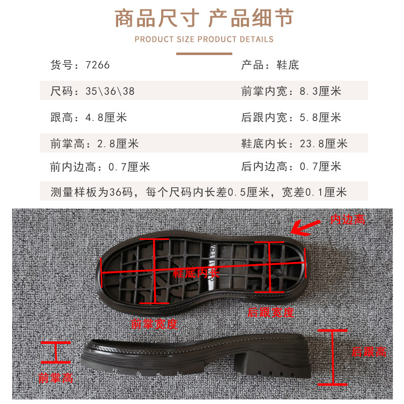 7266 Женская обувная подошва из резиновой нижней части высокой каблуки