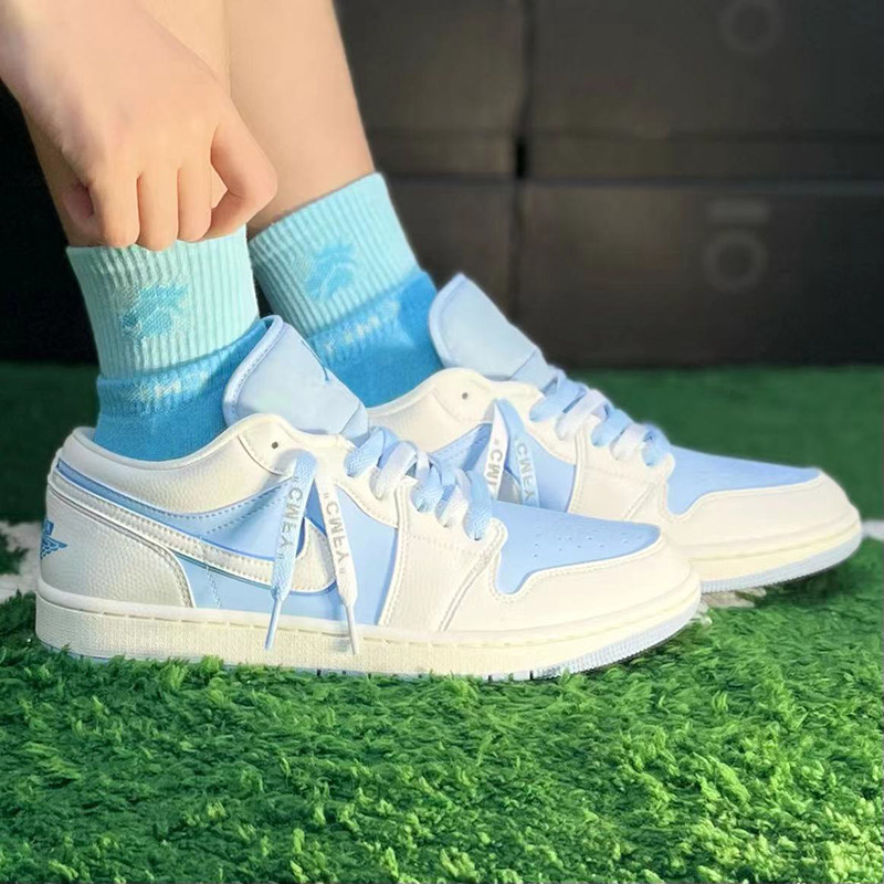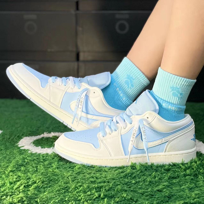 Адаптированные AJ1LOW Синие и белые icablue Retro Basketball Shoes Airjordan отражатель Cmfy кружевные носки