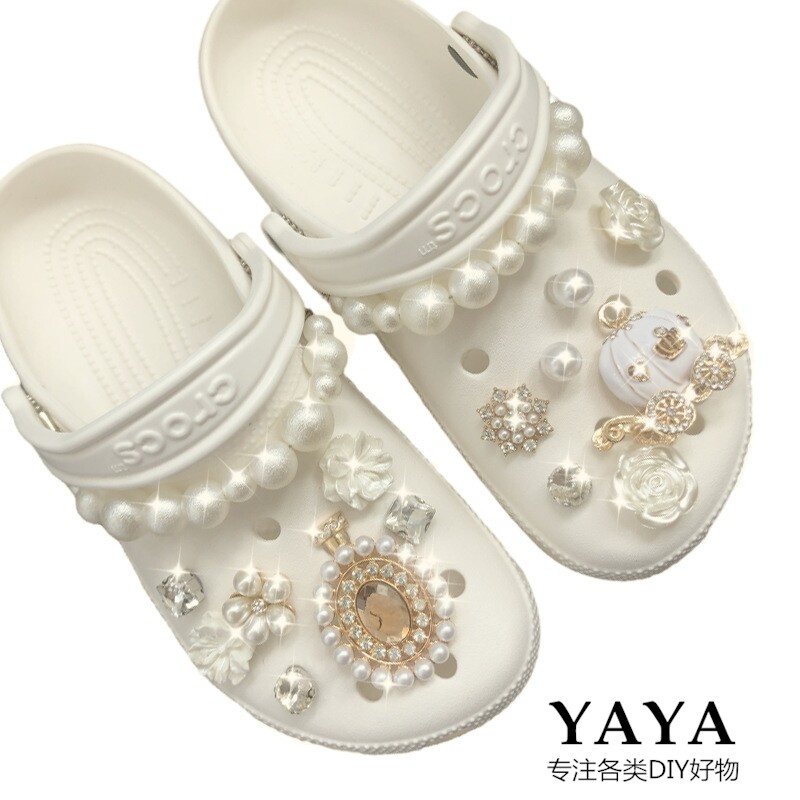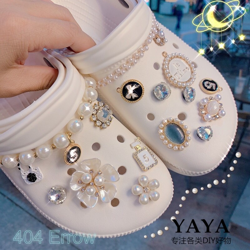 Crocs, аксессуар, бриллиантовая цепь из жемчуга, пряжка для обуви, популярно в интернете, DIY, в стиле Шанель