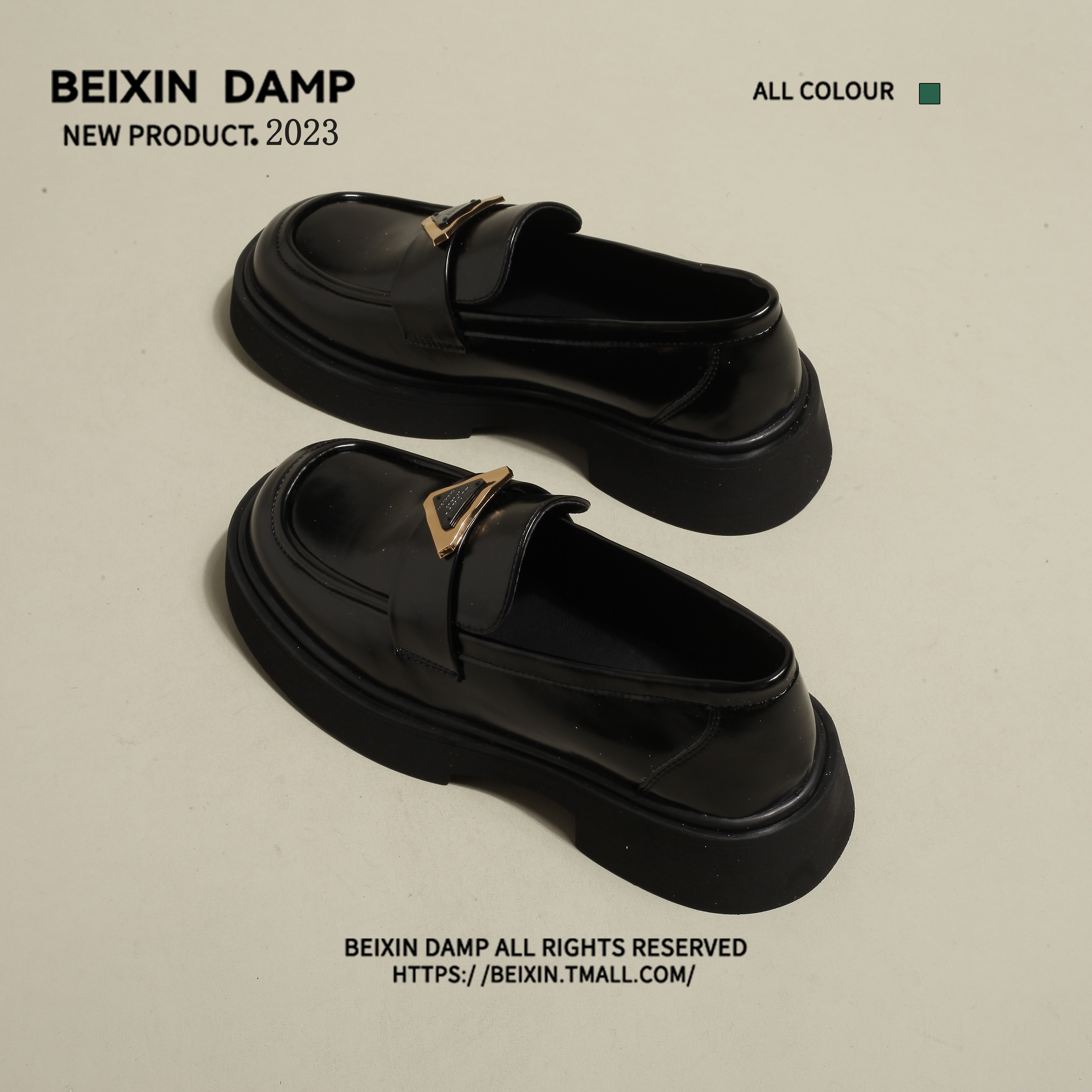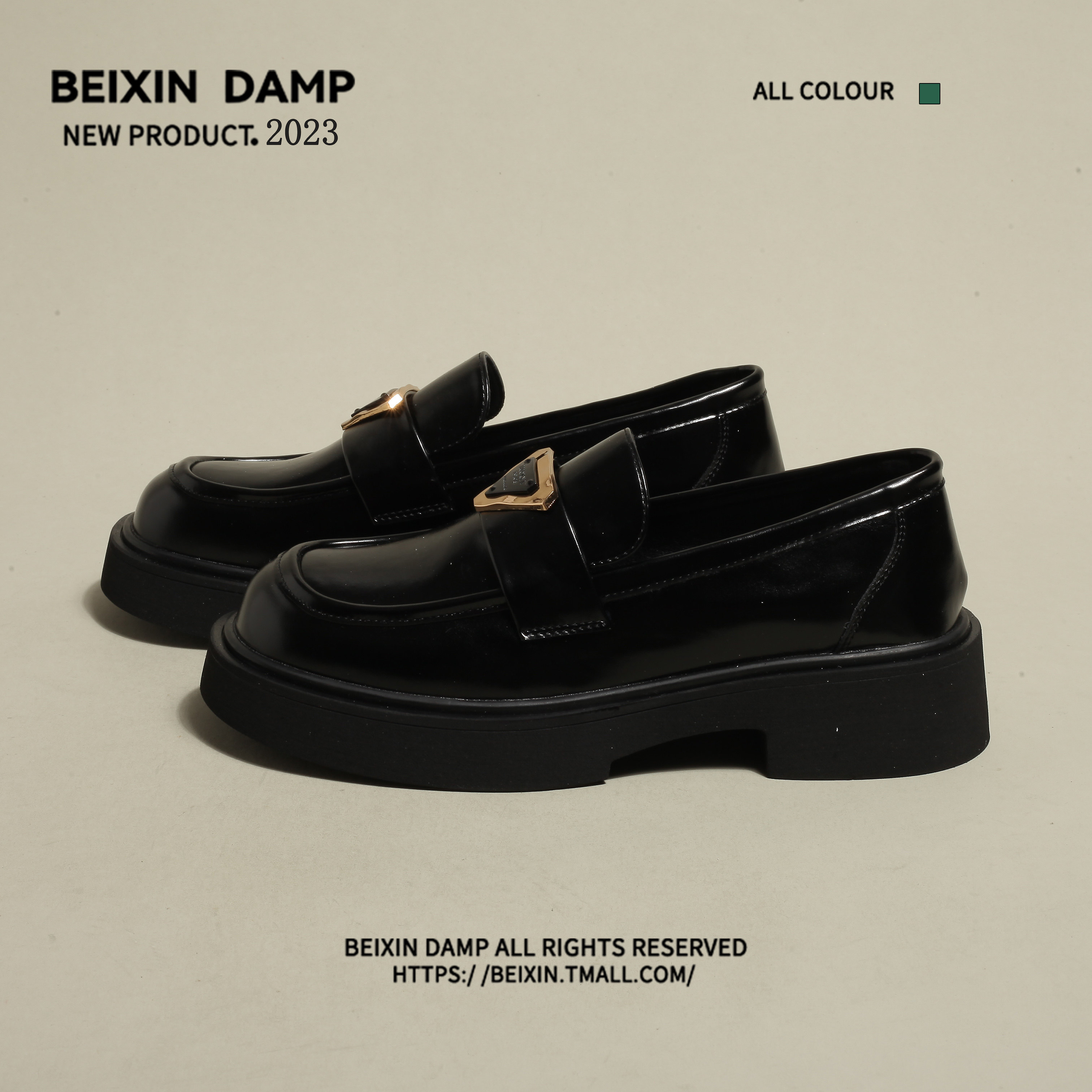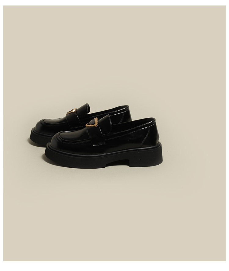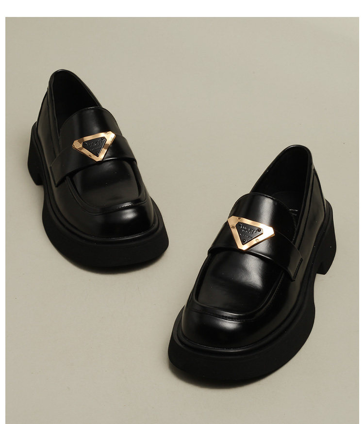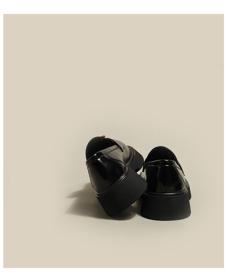 [BEIXIN DAMP 费城假日~厚底粗跟乐福鞋女真皮圆头黑色英伦小皮鞋]