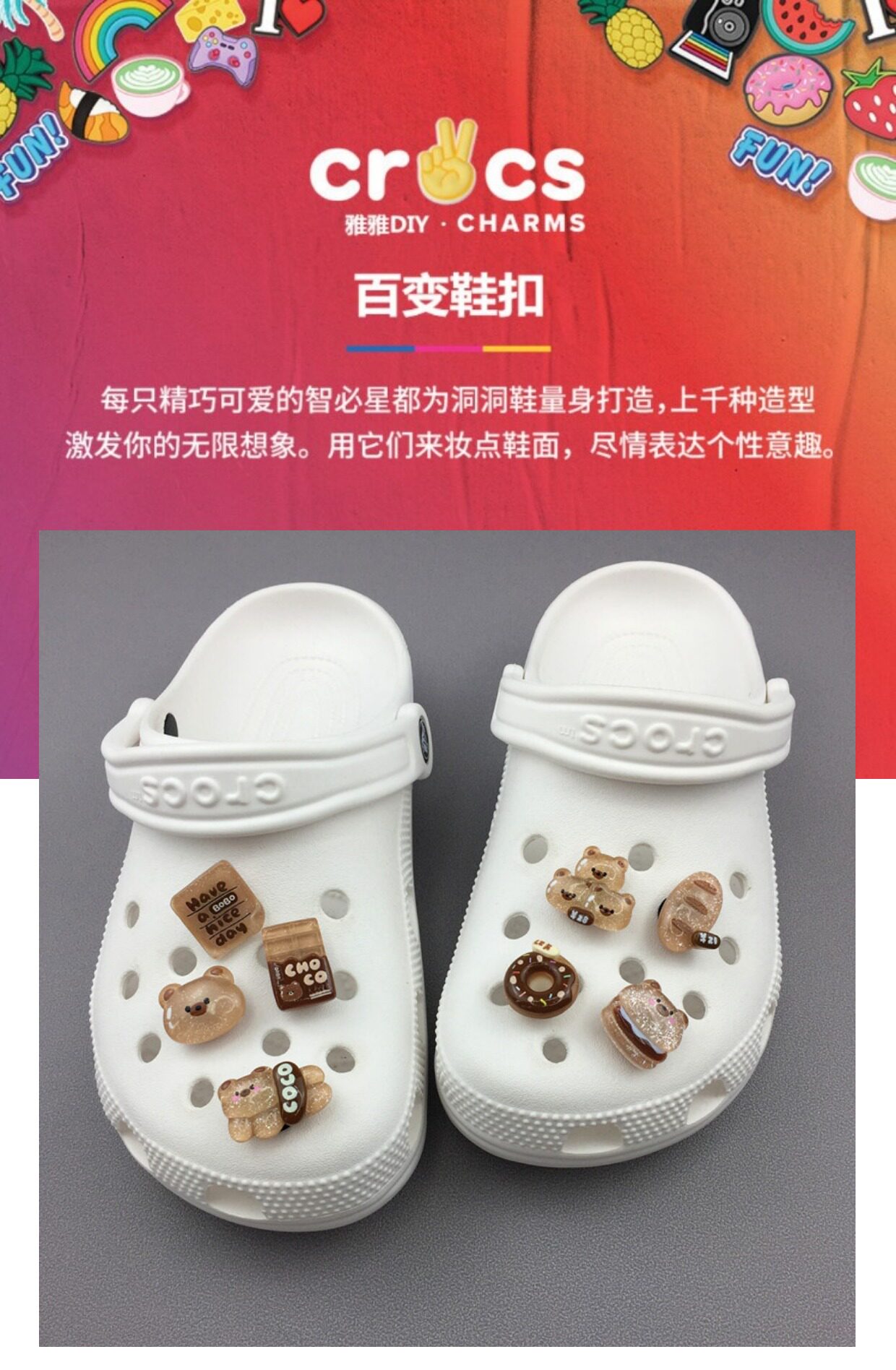 Crocs, акриловая пряжка для обуви, съемный аксессуар, с медвежатами, DIY