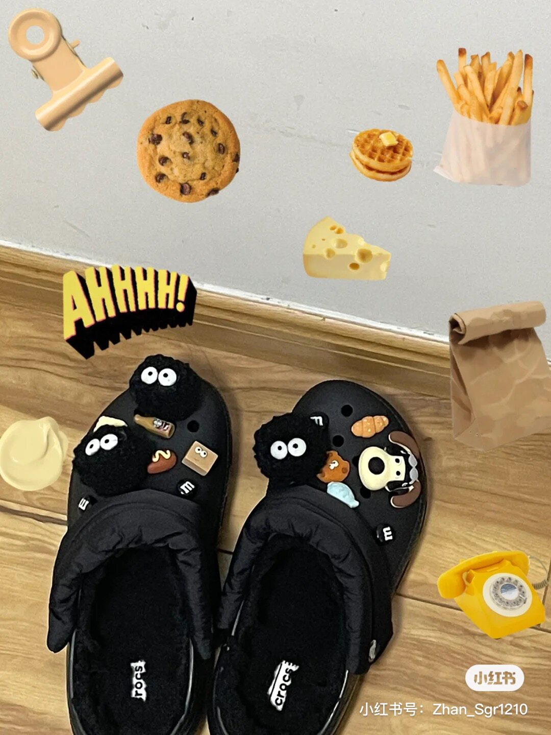 Crocs, трехмерный аксессуар, черная милая пряжка для обуви, DIY