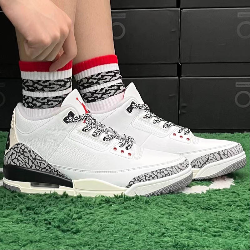 Адаптированный AJ3 White Cement 2023 Версия белого серого airjordan3 Создание старых баскетбольных туфель