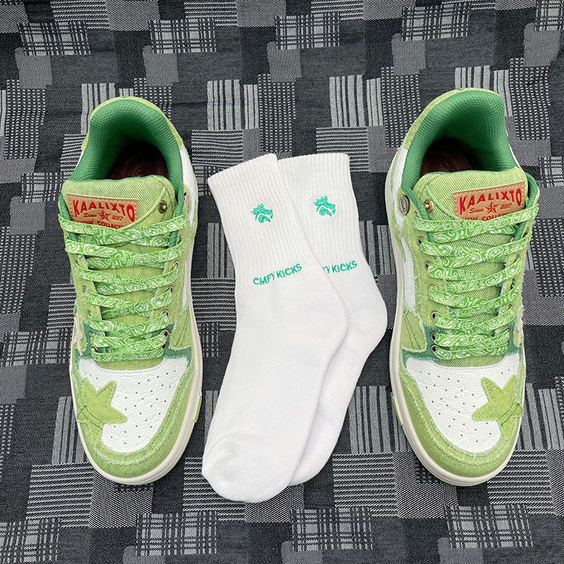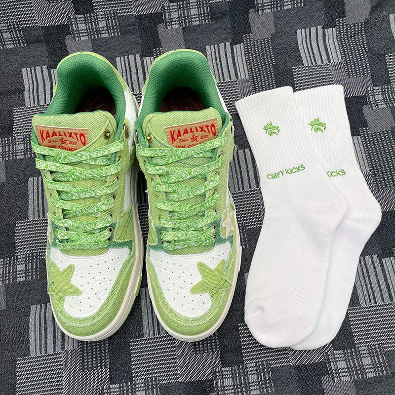 Адаптированные звездные туфли Kaalixt авокадо зеленый низкоульварный холст тарелки национальные приливы Cmfy веревочные шнурки носки