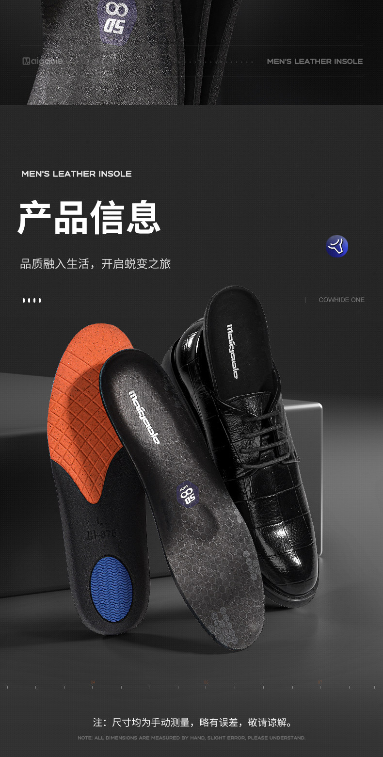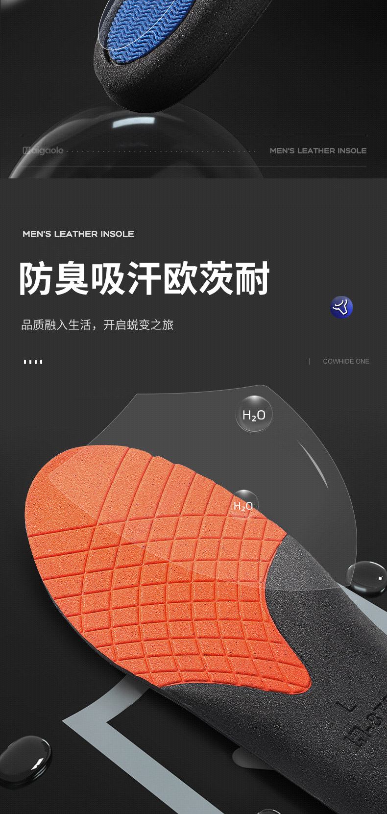 迈高乐 Кожаные летние дышащие стельки, воловья кожа, впитывают пот и запах