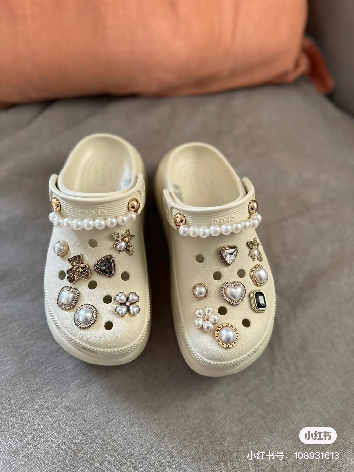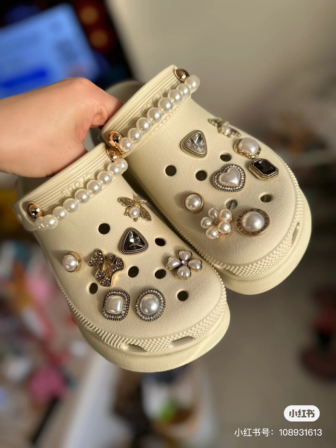Crocs, ретро пряжка для обуви из жемчуга, аксессуар, с драгоценным камнем, четырехлистный клевер, DIY