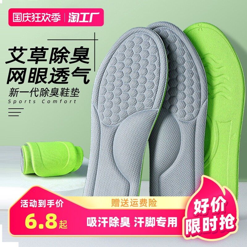 Мужские летние стельки, спортивный амортизирующий дышащий тонкий дезодорант с горькой полынью, впитывают пот и запах