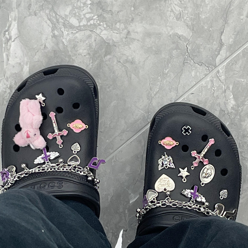 Crocs, металлические туфли, пряжка для обуви, аксессуар, цепь, изысканный стиль