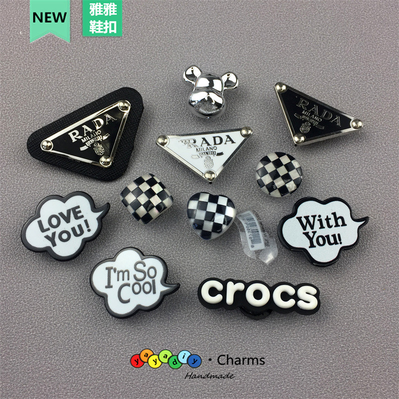 Crocs, туфли, шахматы с буквами, пряжка для обуви, черный съемный аксессуар