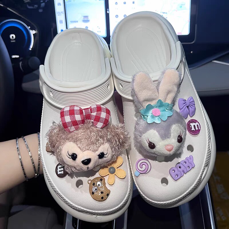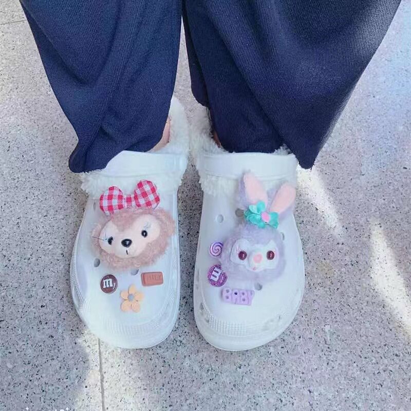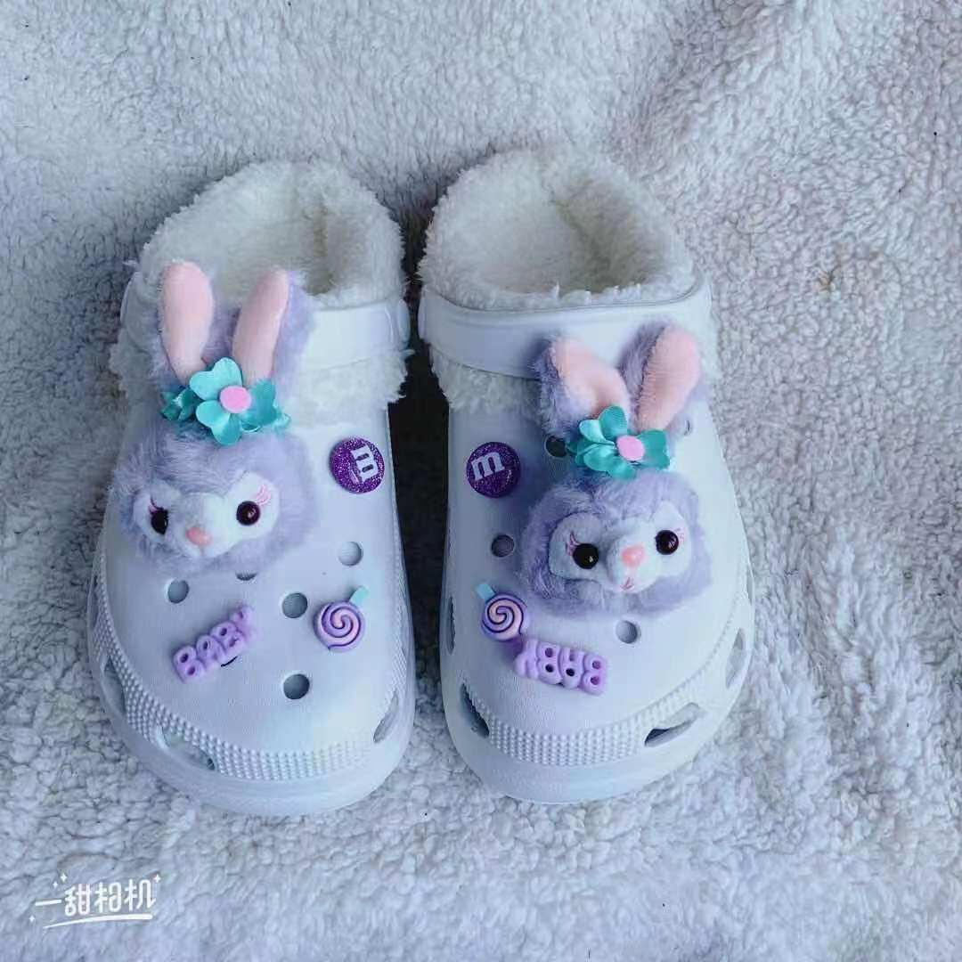 Crocs, мультяшный плюшевый аксессуар, кролик, универсальная удобная обувь, DIY