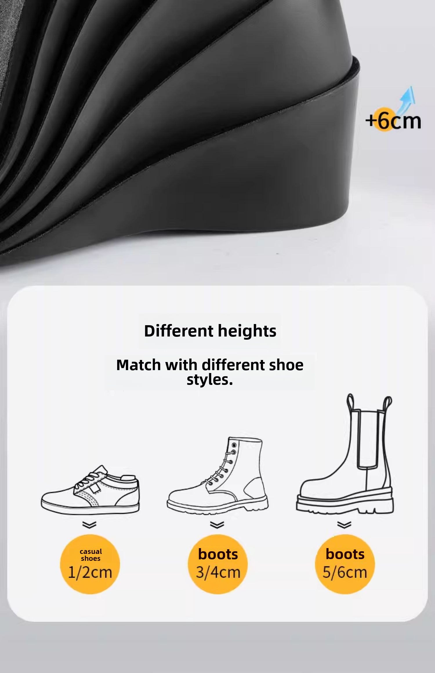 Сапоги, высокие стельки для увеличения роста, 6см, против усталых ног
