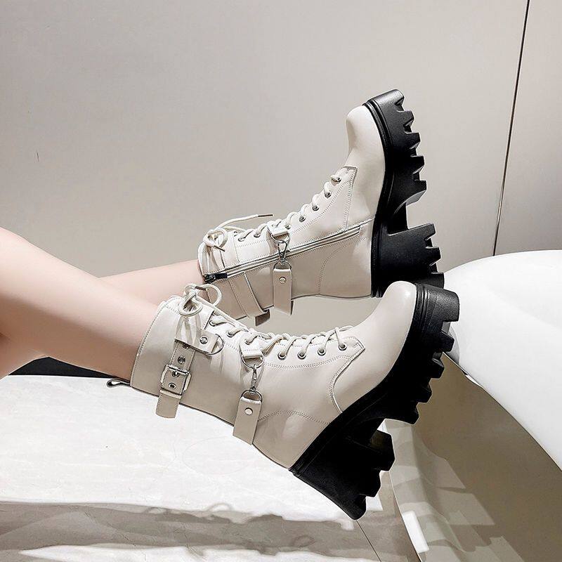 Уличные черные ботинки martin, женские мотоциклетные ботинки, осенние и зимние, новый стиль, подошва толщиной 10 см, высокий каблук, толстый каблук, увеличивающий внутреннюю часть, тонкие короткие сапоги