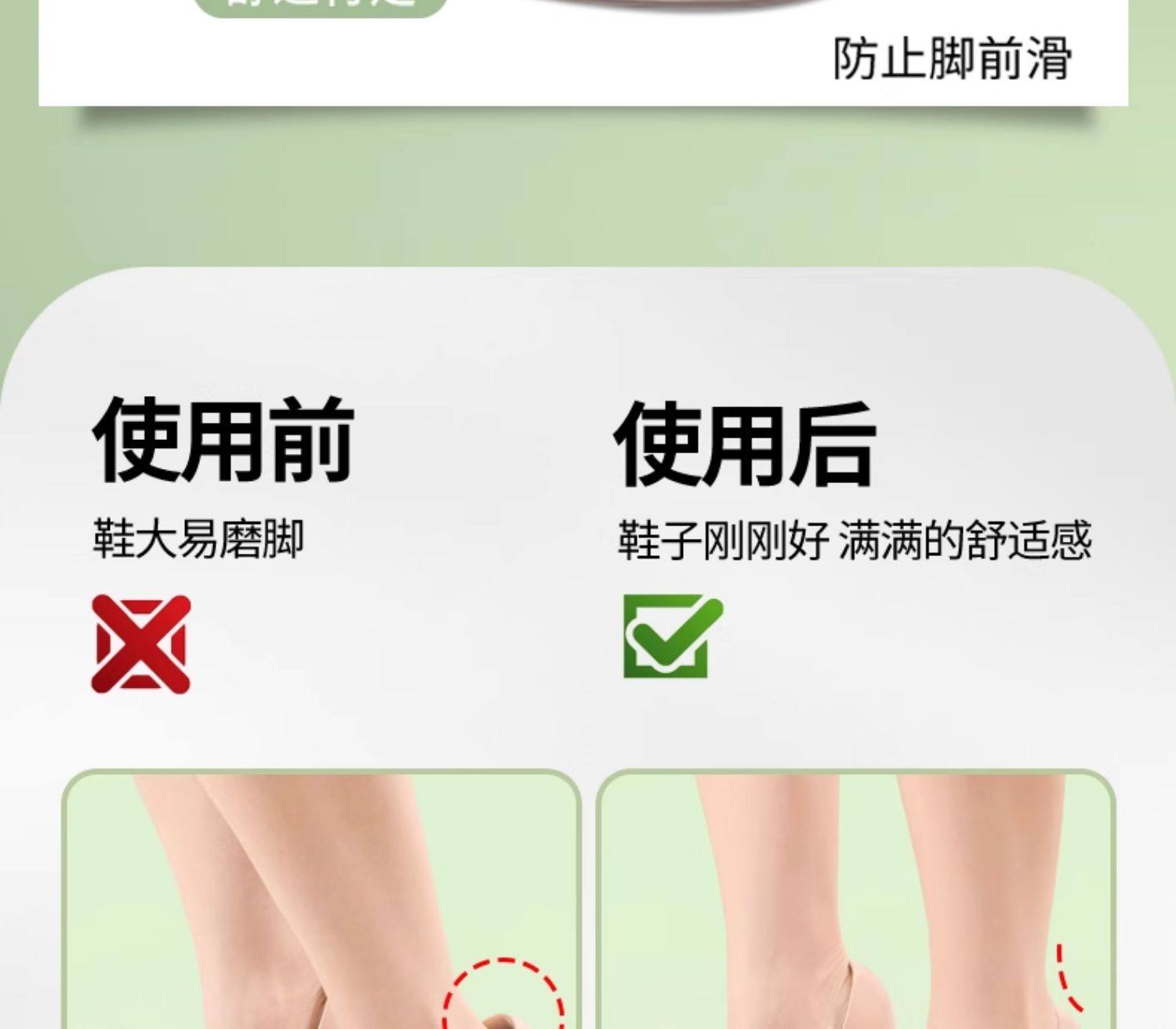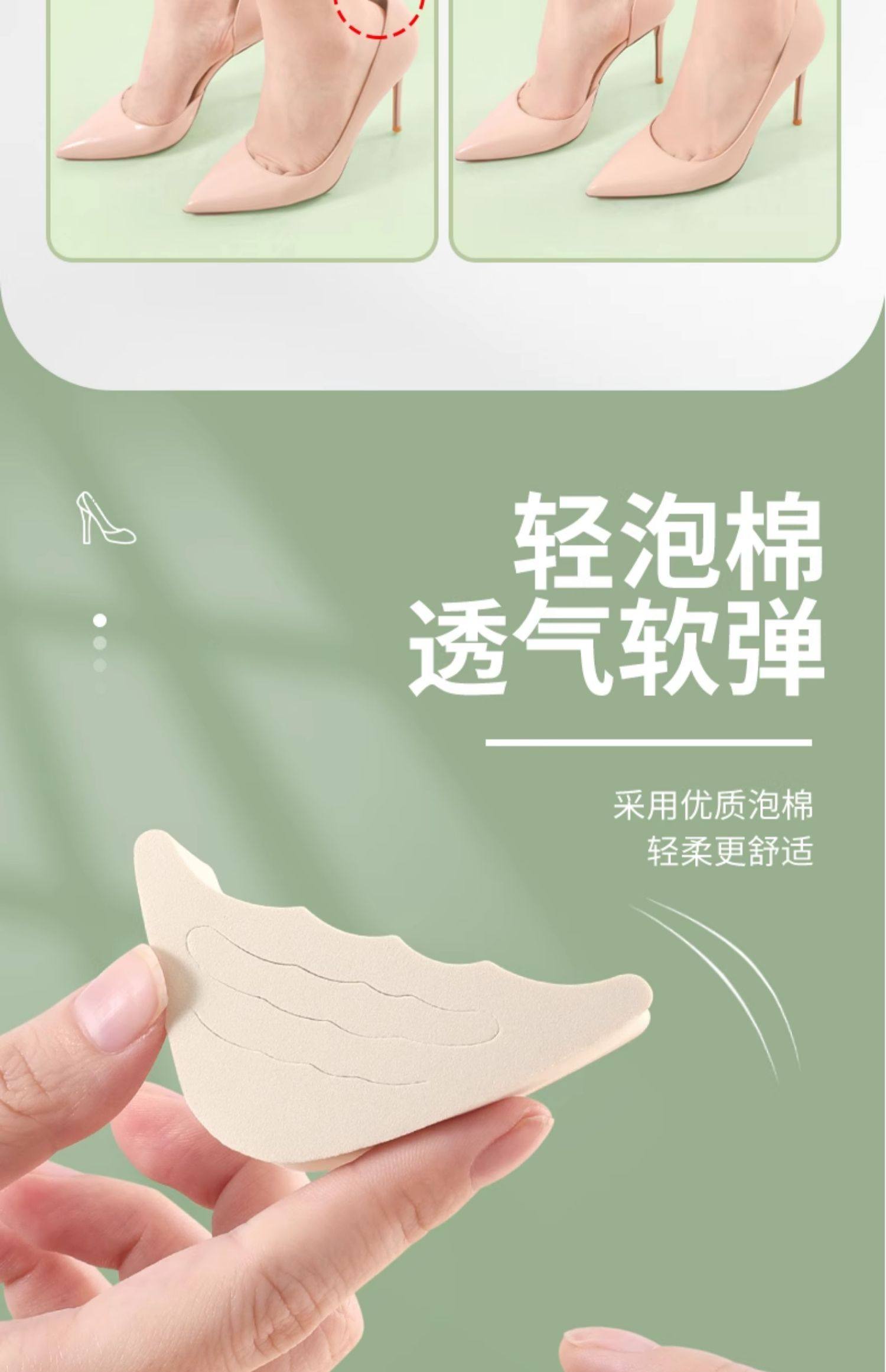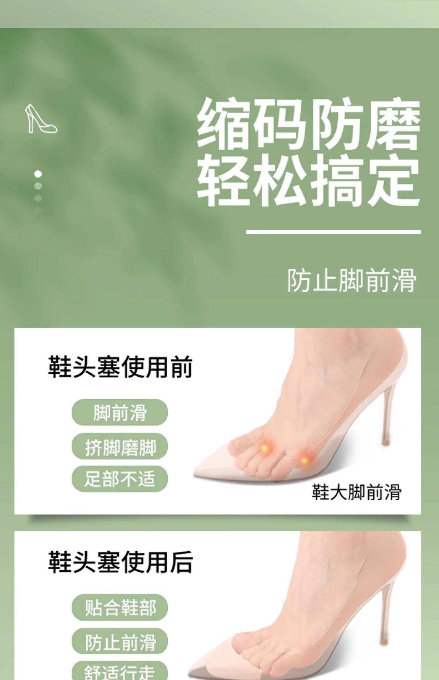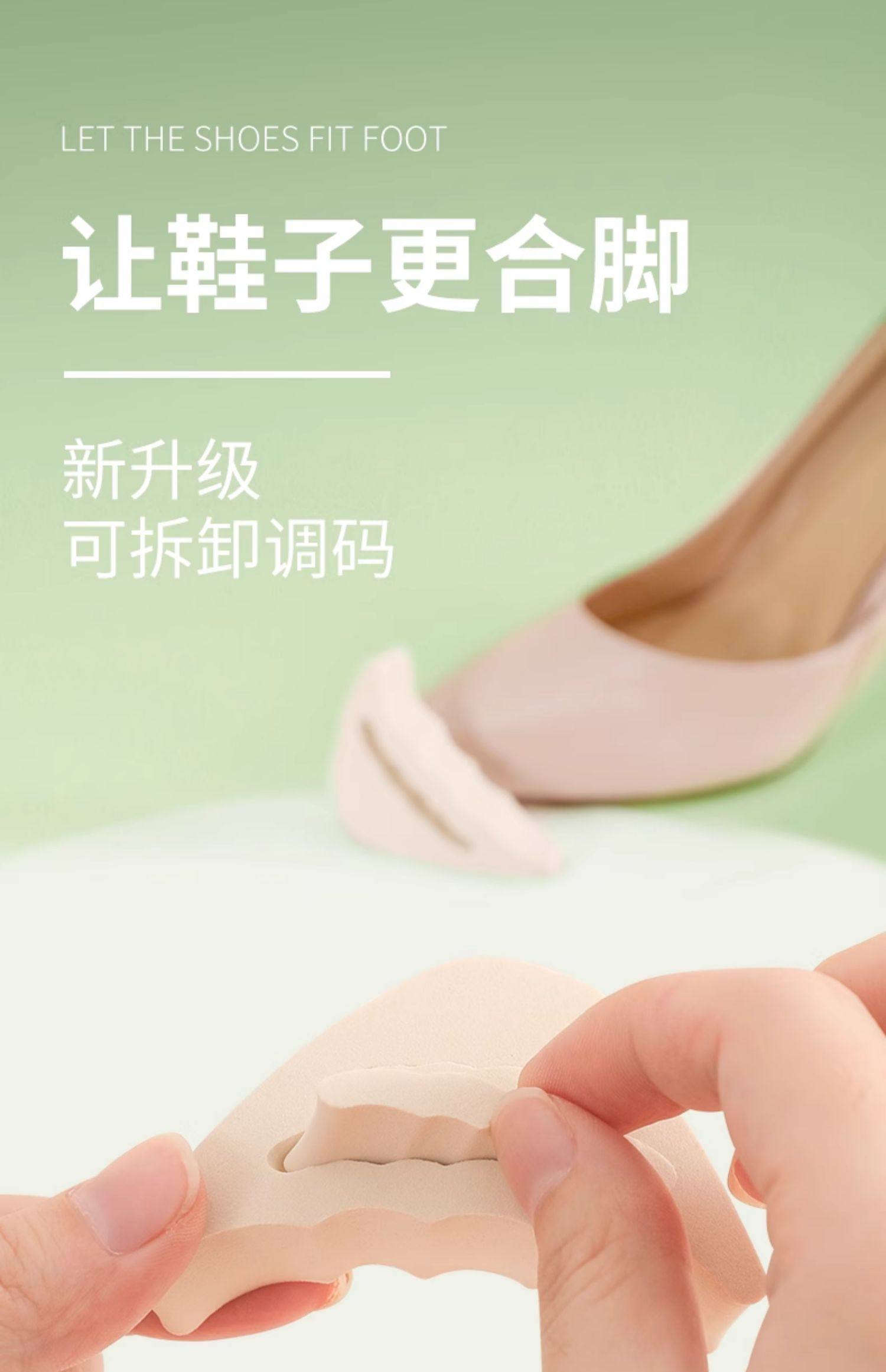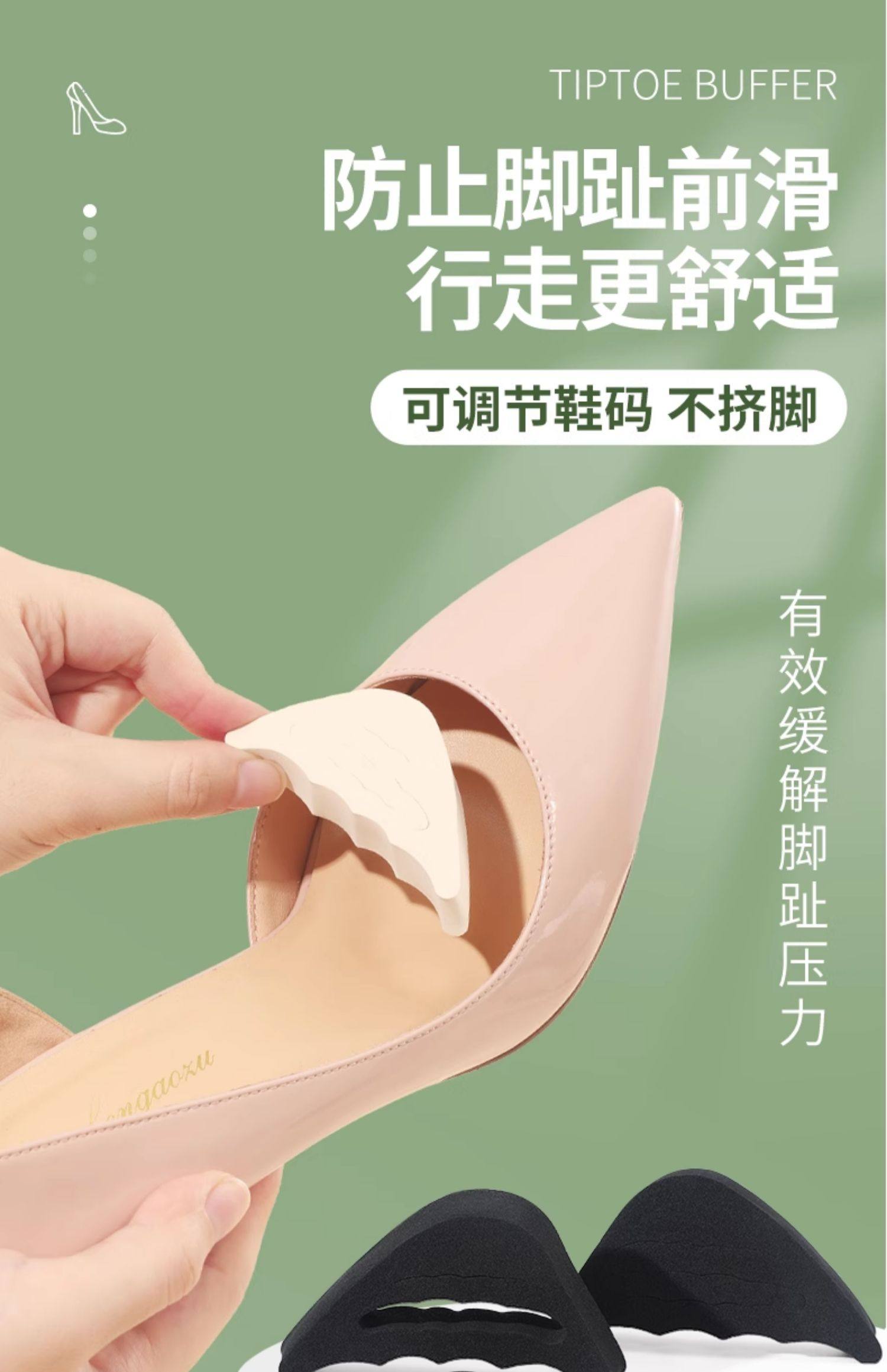Носок обуви на высоком каблуке слишком велик, и обувь заменяется на небольшой артефакт, чтобы заполнить один размер, чтобы отрегулировать подушечку носка, подушечку передней части стопы, подушечку половинного размера и заостренный носок.