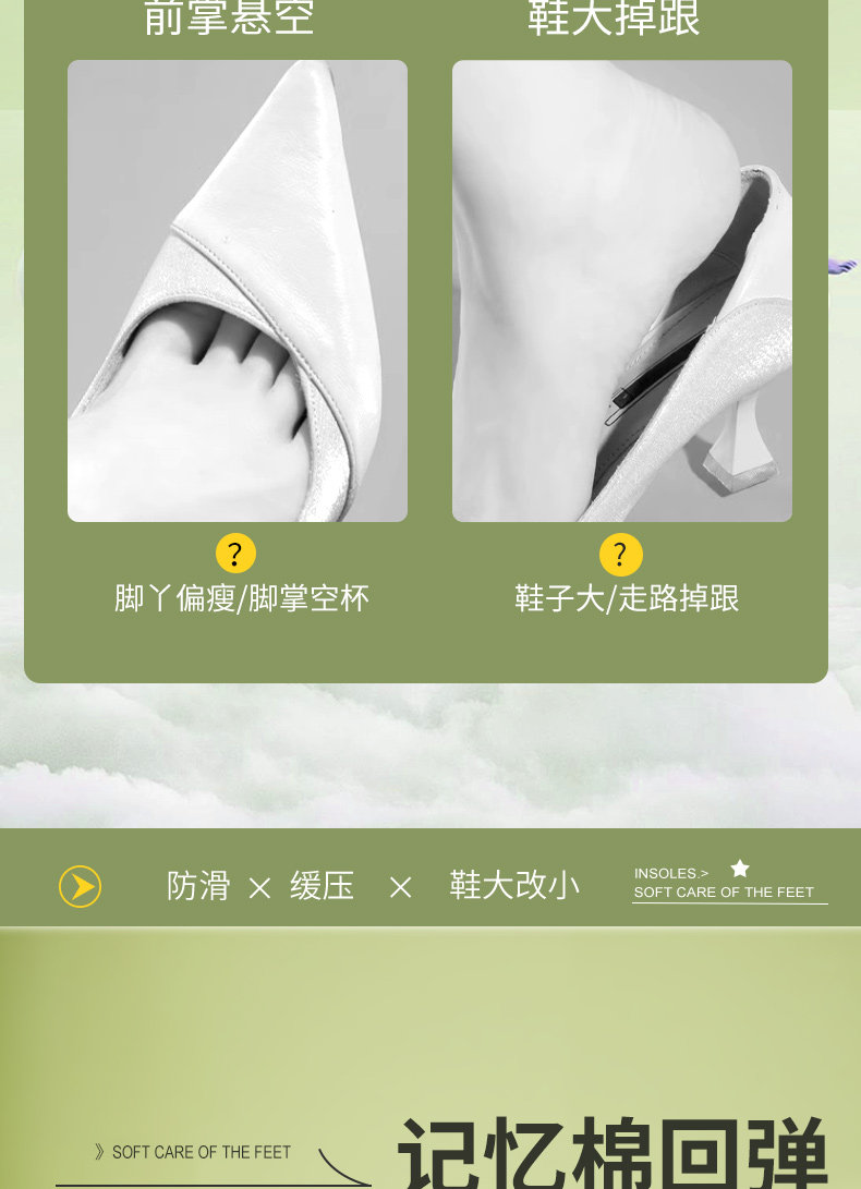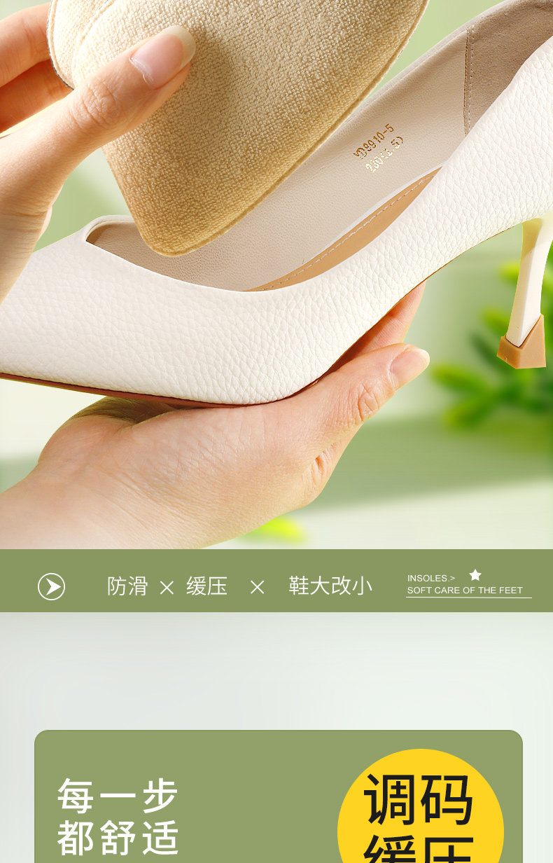 Противоболевые туфли на высоком каблуке, невидимые нескользящие полустельки, впитывают пот и запах