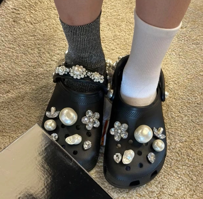 Crocs, аксессуар, бриллиантовые кроксы, пряжка для обуви из жемчуга, изысканный стиль