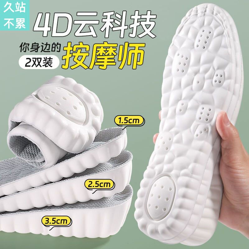 Спортивные дышащие стельки для увеличения роста, противоболевые амортизирующие напяточники, впитывают пот и запах